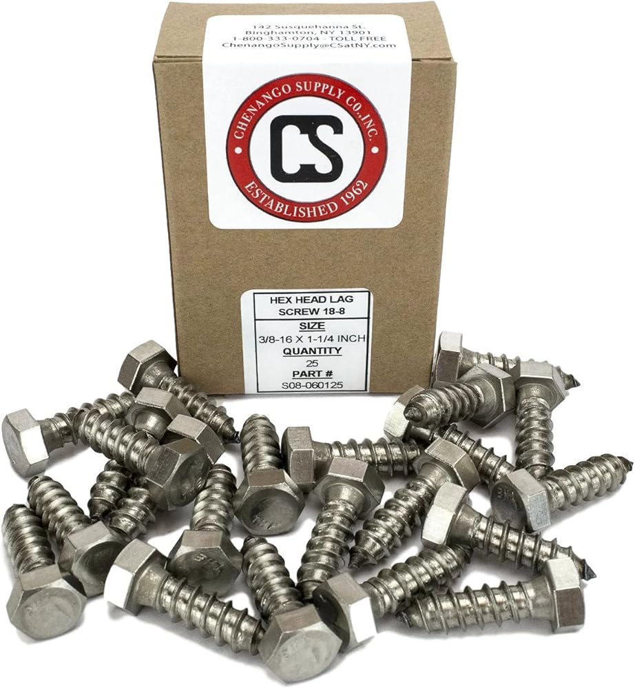 برغي سداسية 3/8 بوصة، 18-8 من الفولاذ المقاوم للصدأ. عبوة من 25 قطعة. تُستخدم البراغي المتأخرة بشكل شائع لربط العناصر بالأرضيات الخشبية أو الخشبية. جيدة جدًا لبناء الأسطح. يمكن استخدامها أيضًا جنبًا إلى جنب مع مثبتات الدرع المتأخر للتأمين. للخرسانة. مقاومة جيدة جدًا للتآكل. هذه جيدة للتطبيقات حيث سيتم استخدامها في الخارج.