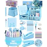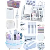 تنظيم وأسلوب أرجواني الكل في واحد: ارفع مساحة العمل الخاصة بك مع هذه المجموعة الكاملة من ملحقات المكتب الأرجوانية الأساسية! يتميز بمنظم مكتب شبكي واحد، وحامل أقلام دوار 360 درجة، ومجموعة مشابك واحدة (تتضمن مشابك ورقية، مجلدات كبيرة، مجلدات صغيرة، دبابيس)، 1 دباسة، 1000 دبوس، 1 مزيل أساسي، 1 موزع شريط، 1 شريط لاصق، 1 كتاب جيب، 1 قلم جيب، 1 منظم جلد البولي يوريثان، 1 مسطرة، 1 مقص، 1 كتاب ملاحظات لاصقة، 6 أقلام، 1 قاعدة