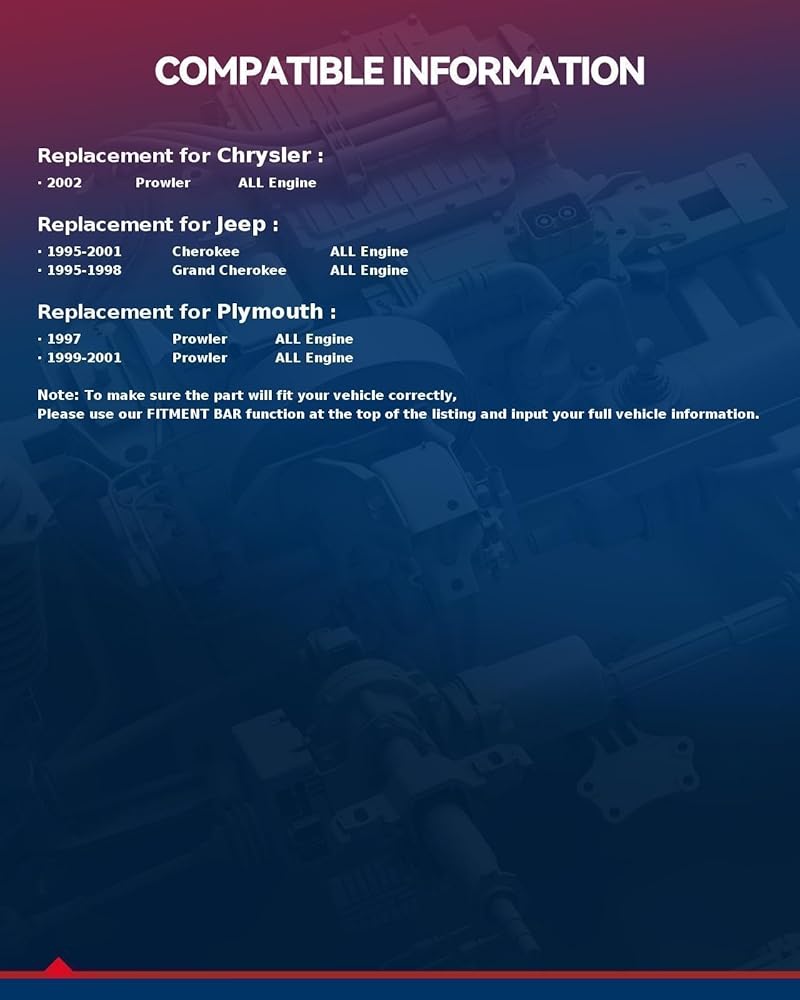 [تركيب السيارة]: أسطوانة الفرامل الرئيسية KAX متوافقة مع Jeep Cherokee 1995-2001، Jeep Grand Cherokee 1995-1998، Plymouth Prowler 1997 1999-2001، Chrysler Prowler 2002.