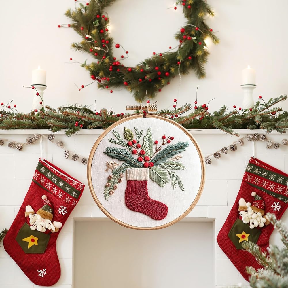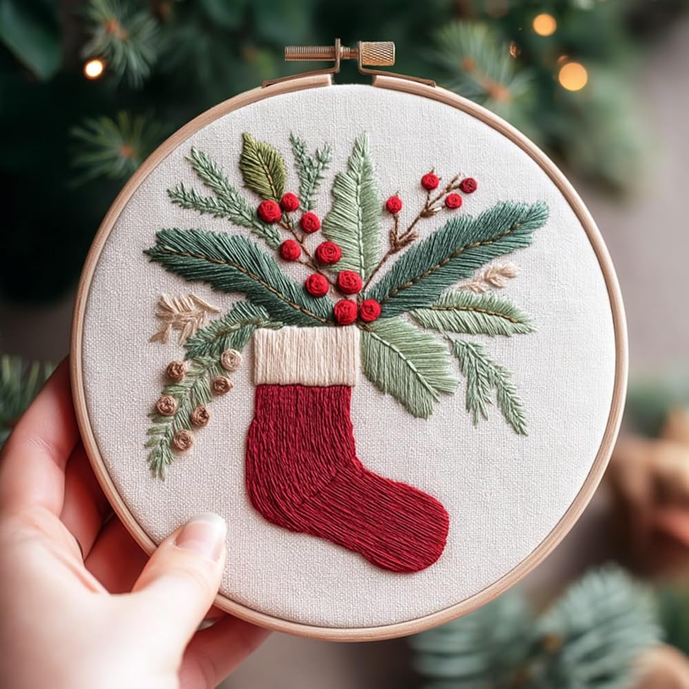مجموعة أدوات الخياطة الكاملة بالإبرة: تتضمن طوق تطريز مقاس 8 بوصات، وقماش مطبوع مسبقًا (حوالي 12 × 12 بوصة)، وخيوط، وإبر، وتعليمات باللغة الإنجليزية، وأدوات الملحقات الأخرى