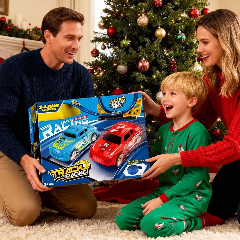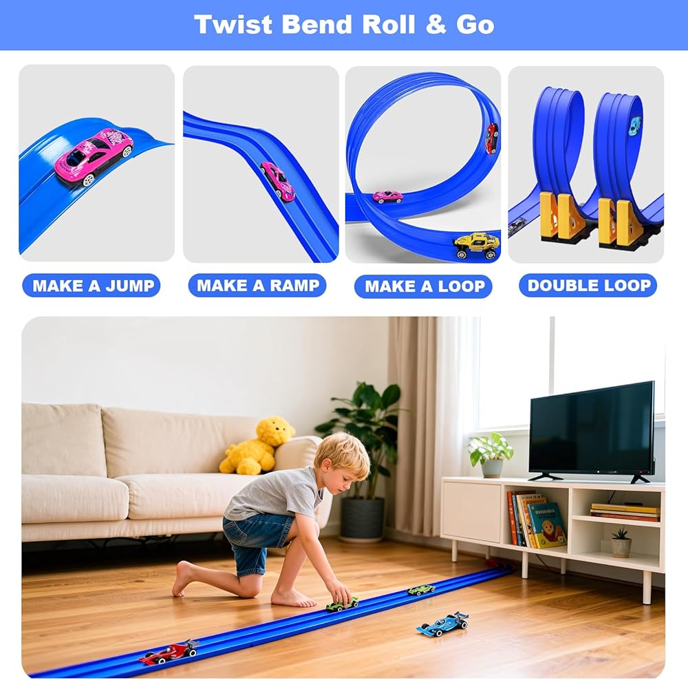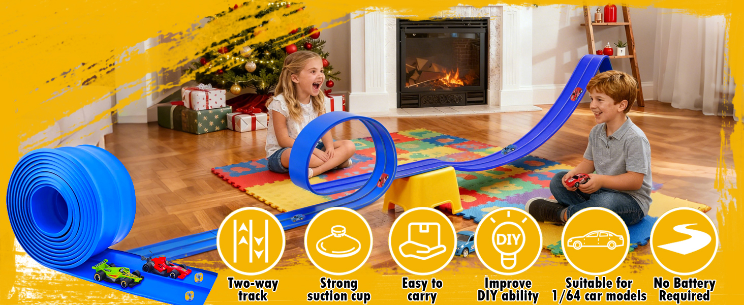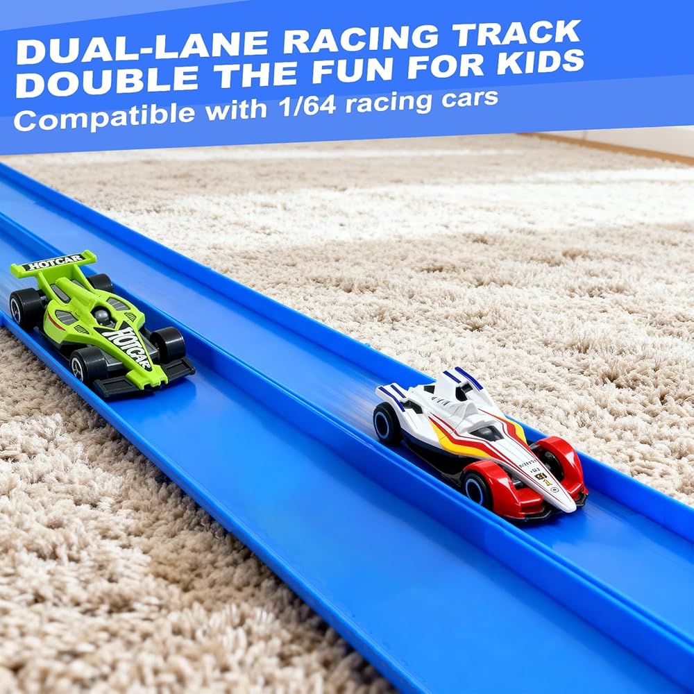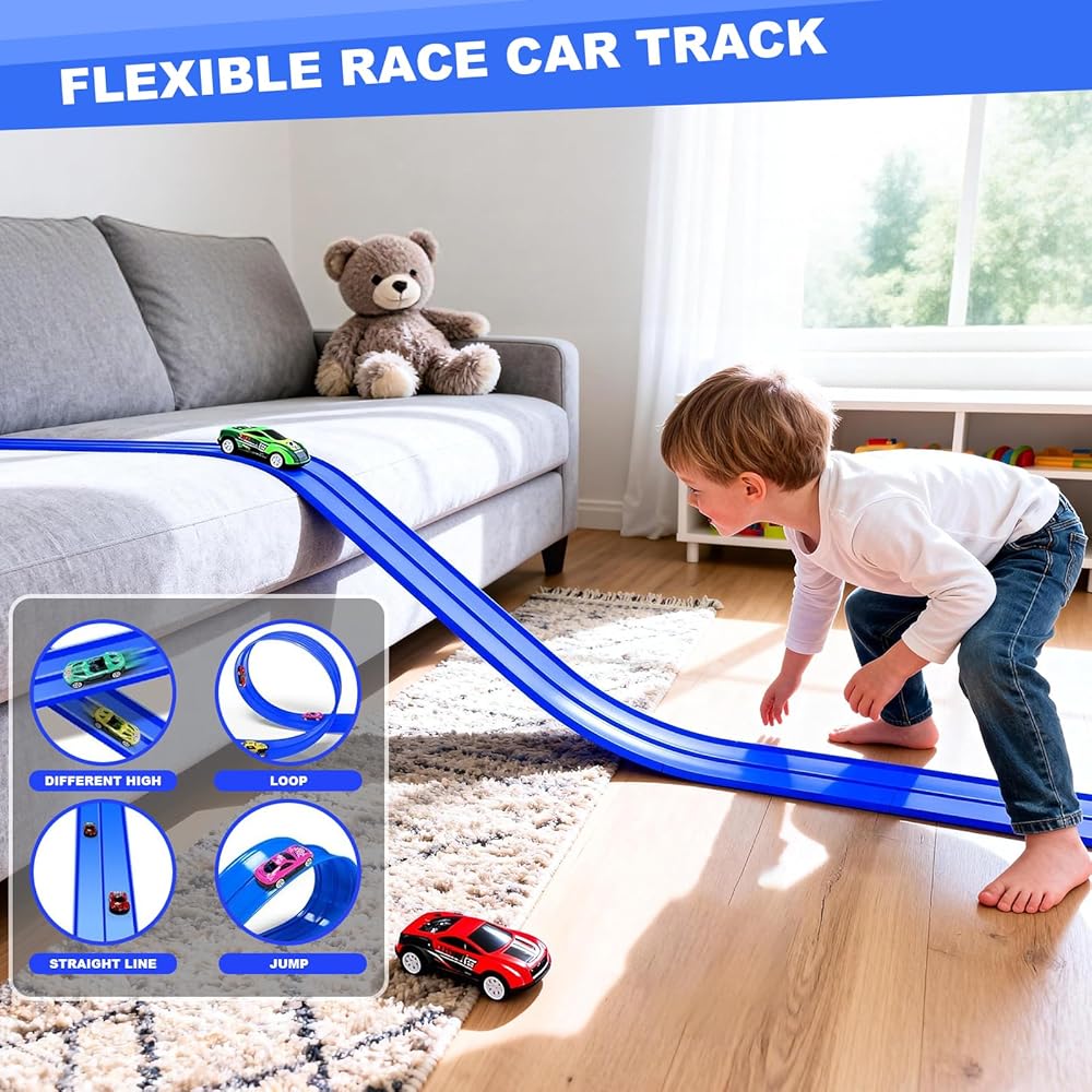 【الهدية المثالية للمتسابقين الصغار】هل تبحث عن هدية مميزة بدون شاشة؟ يُعد مسار السباق المرن هذا نجاحًا كبيرًا في أعياد الميلاد أو الكريسماس أو عيد الفصح أو العطلات الصيفية. محبوبة من قبل الأطفال لإمكانيات المسار غير المحدودة ويثق بها الآباء بسبب بنيتها الآمنة وعالية الجودة - إنها الهدية المثالية لكل طفل محب للسيارة!