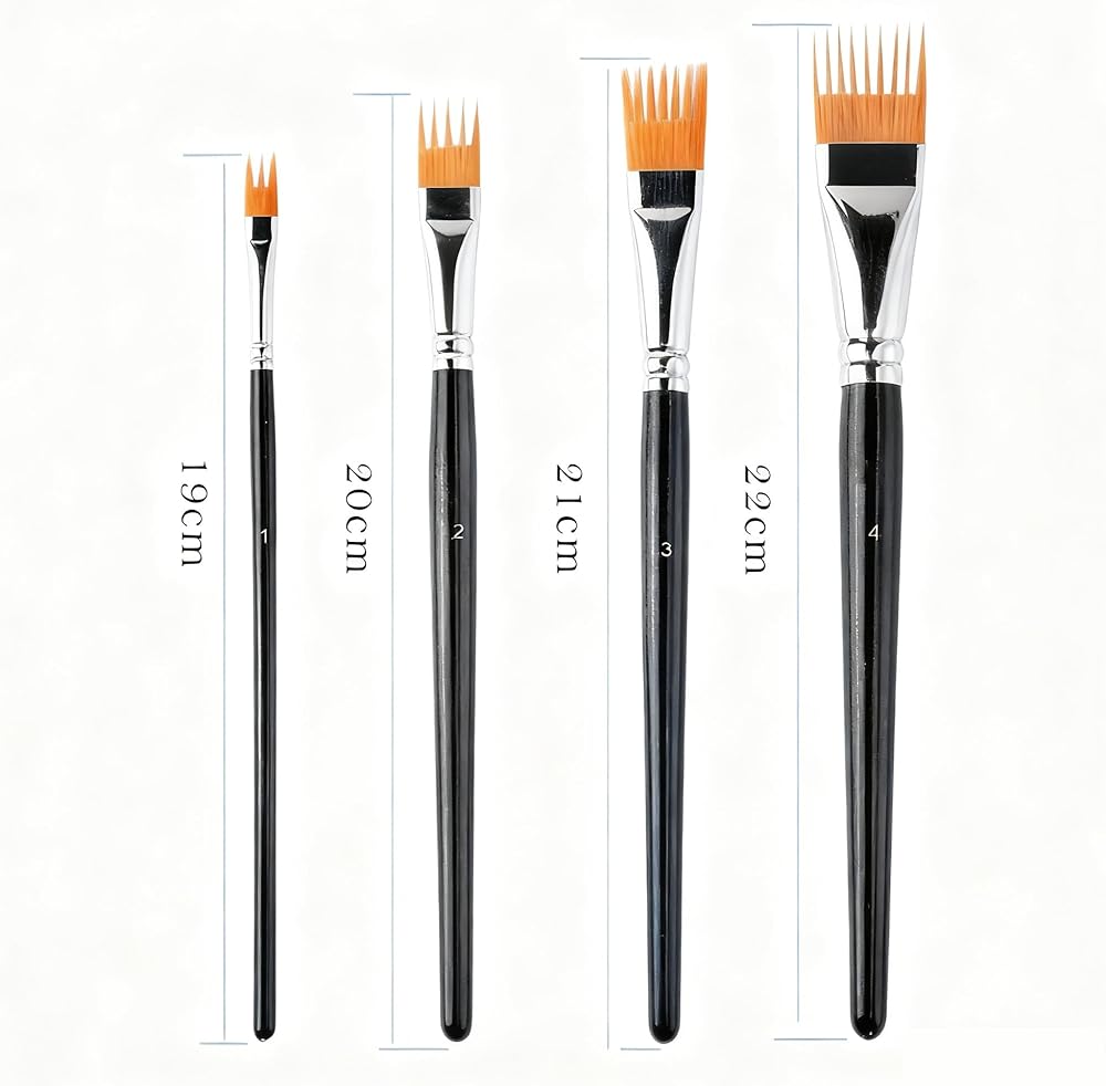 【مجموعة مشط فرشاة طلاء احترافية للفنانين】تحتوي مجموعة فرشاة المشط هذه على أربعة أحجام مختلفة: 22x2.7 سم/8.8x1.08 بوصة، 21x1.8 سم/8.4x0.72 بوصة، 19.5x1.9 سم/7.8x0.76 بوصة، 18.5x0.9 سم/7.4x0.36 بوصة. يمكنك اختيار الفرشاة المناسبة وفقًا لاحتياجاتك لتعزيز تعبيرك الفني.