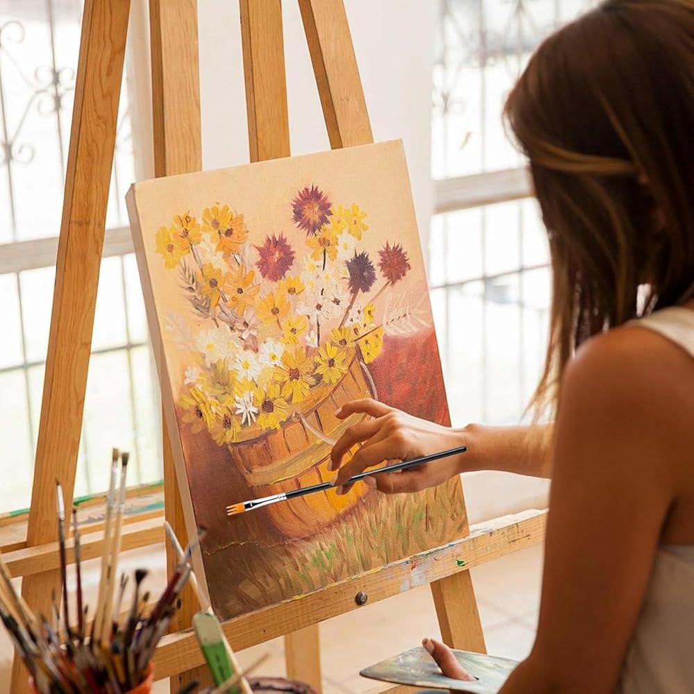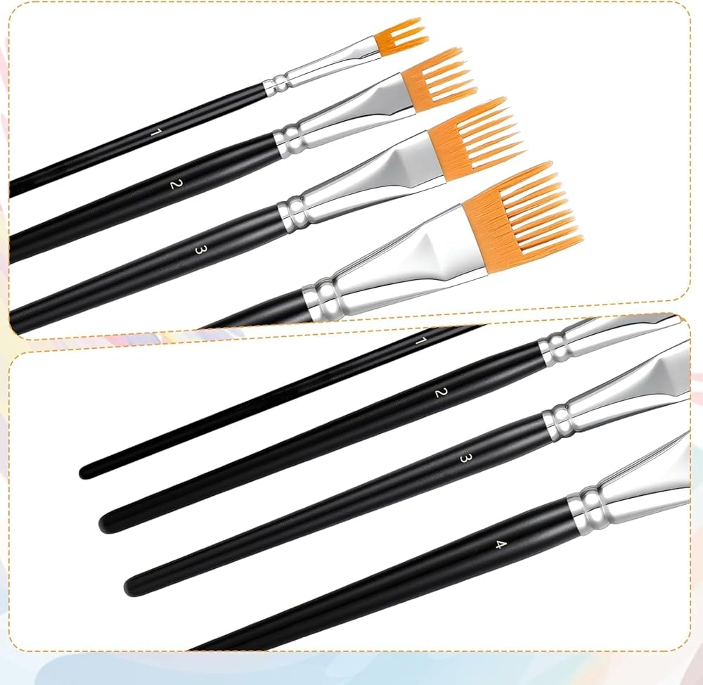 【مواد ممتازة】فرشاة الرسم هذه مصنوعة من شعيرات النايلون وسبائك الألومنيوم عالية الجودة ومقابض البتولا السوداء المريحة. تضمن المواد عالية الجودة متانة طويلة الأمد وهي مثالية لإضافة العمق والملمس والحركة إلى أعمالك.