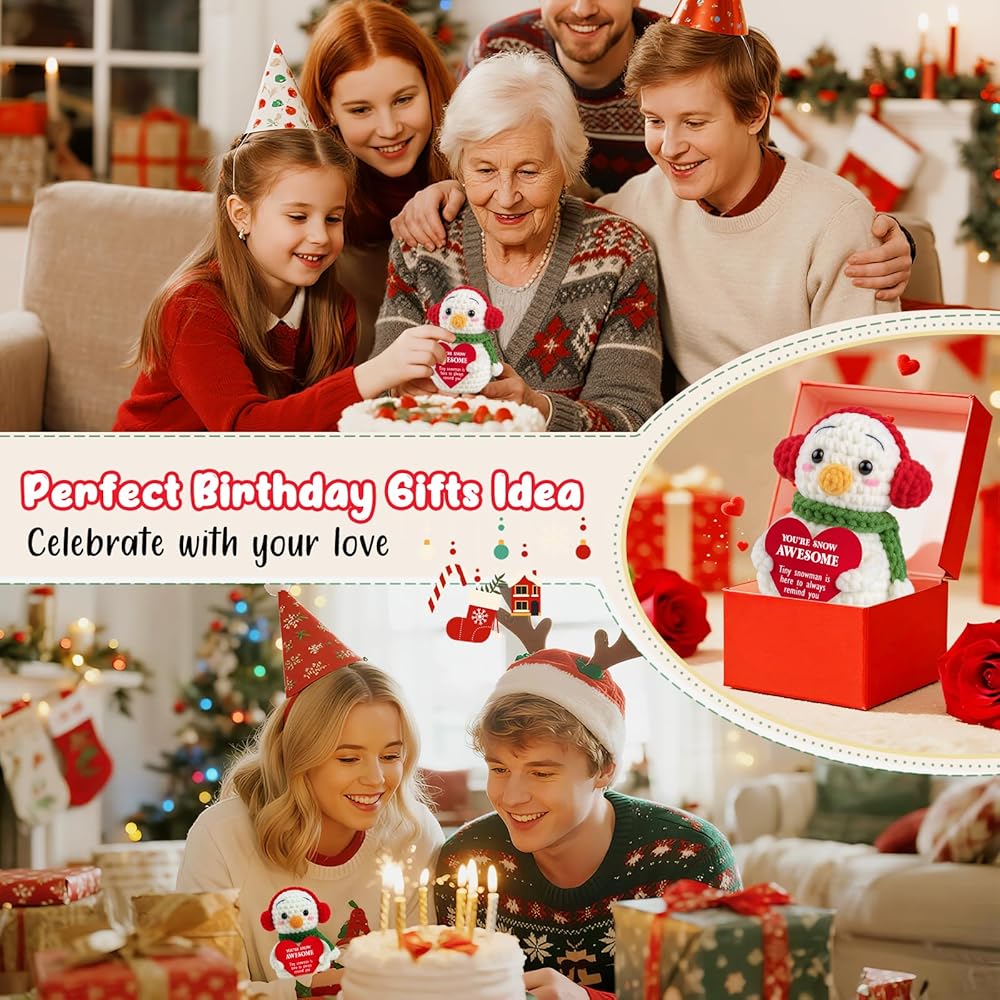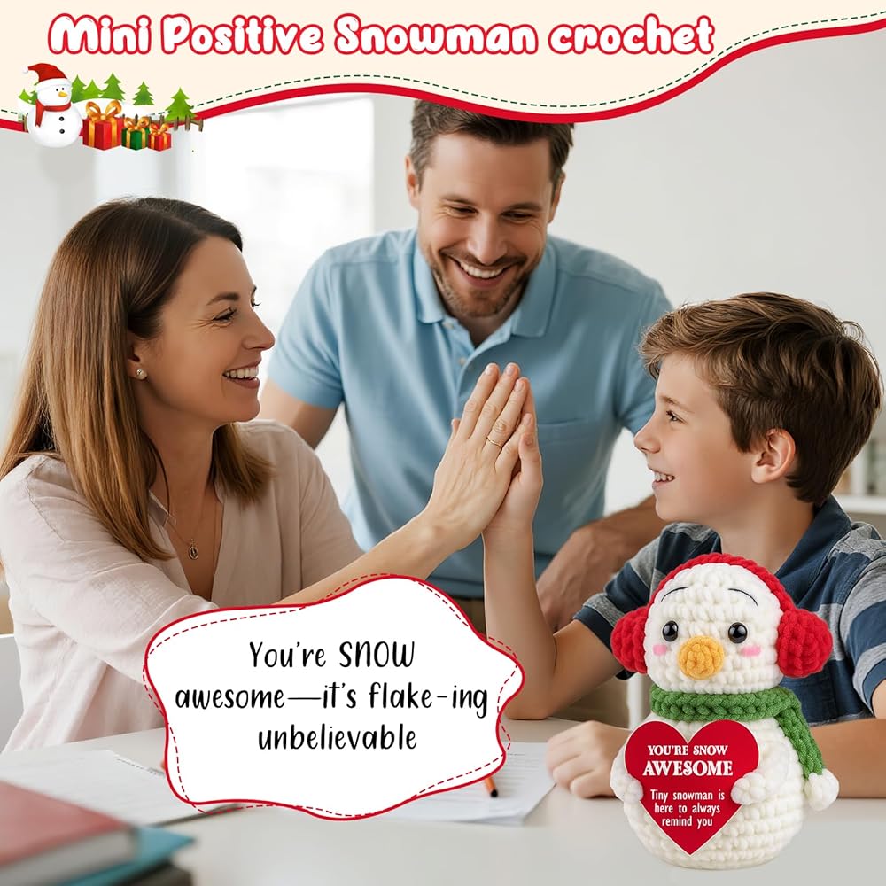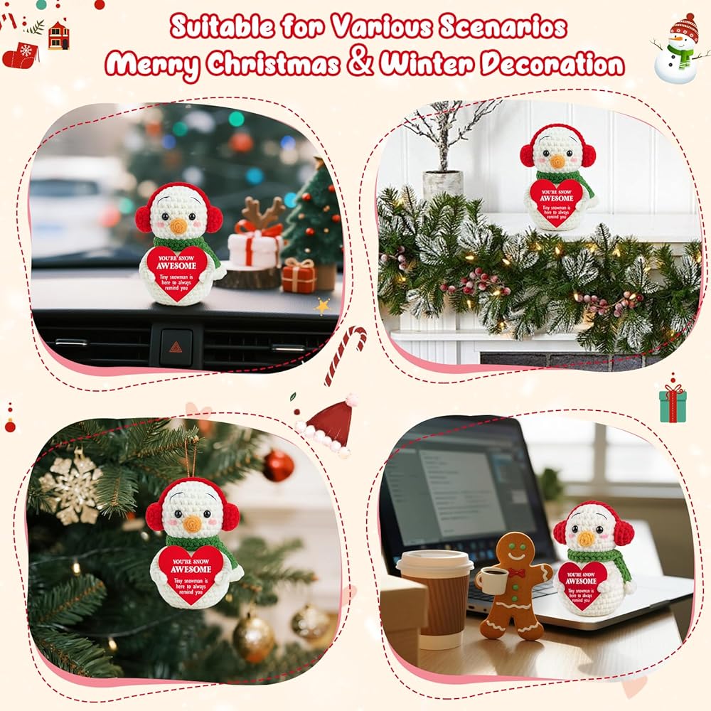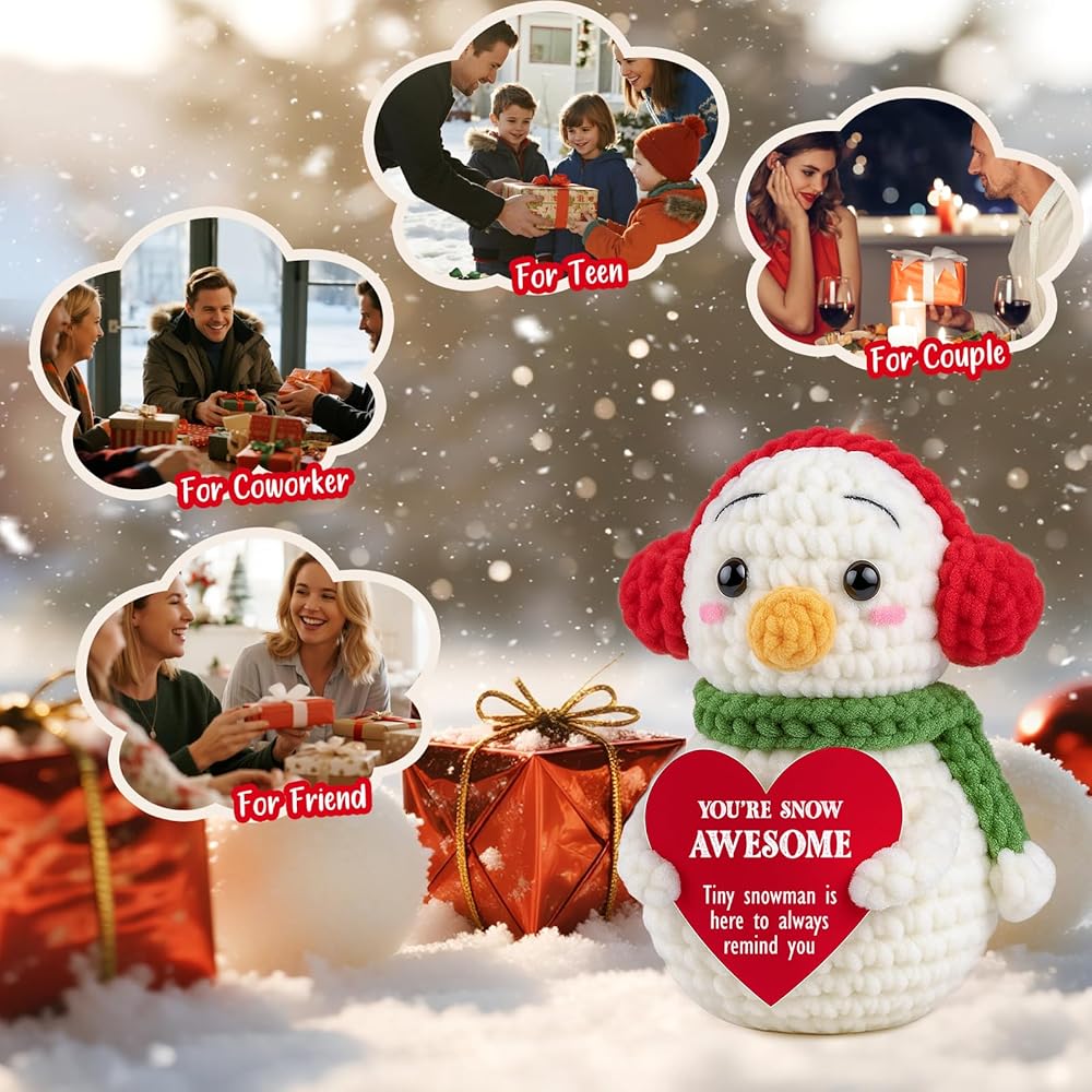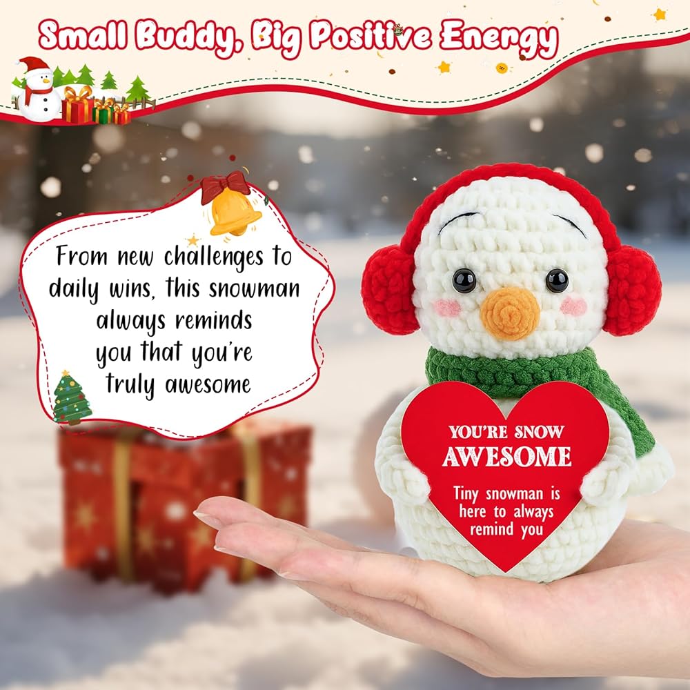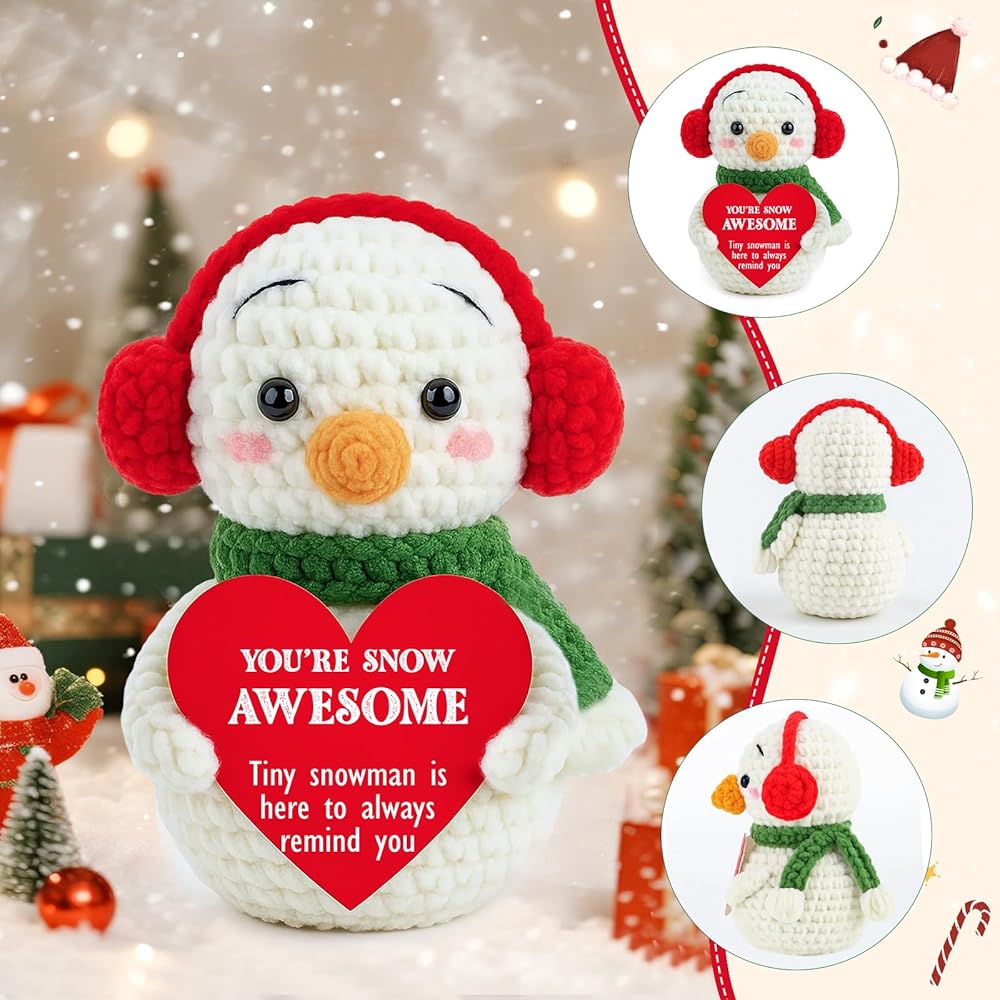 This mini crochet snowman isn't just cute—it's a message wrapped in yarn. From its classic red-and-green charm to the heartwarming card that reads "I LOVE YOU SNOW MUCH," this little buddy brings laughter, comfort, and cheer wherever it lands. Whether perched on a holiday mantel, nestled in a gift basket, or waiting under the tree, it carries a gentle reminder: winter may be cold, but love always stays warm.Perfect for more than just the holidays.