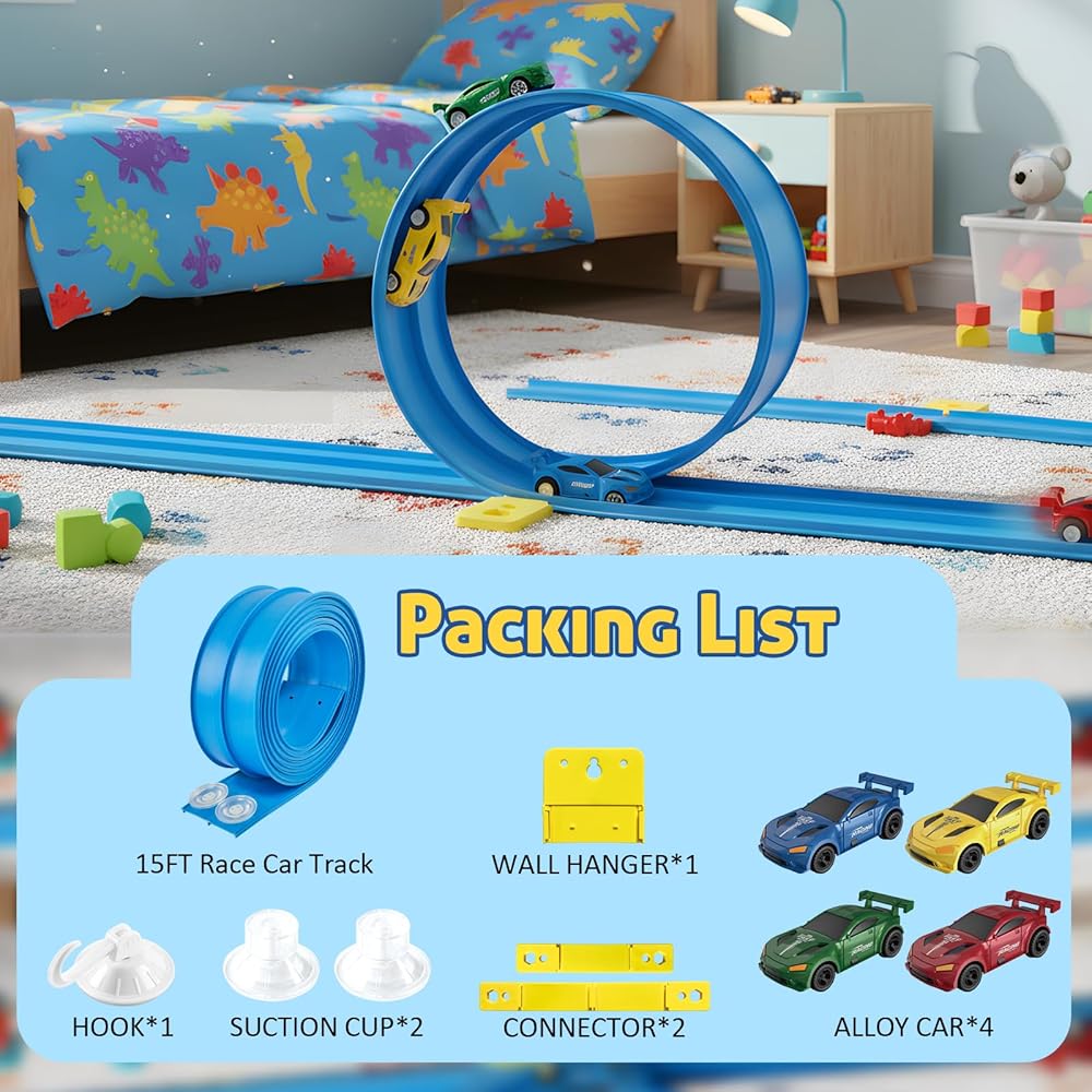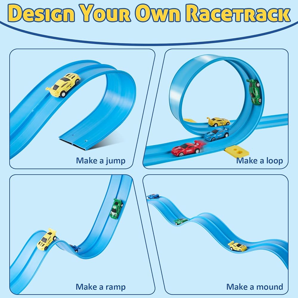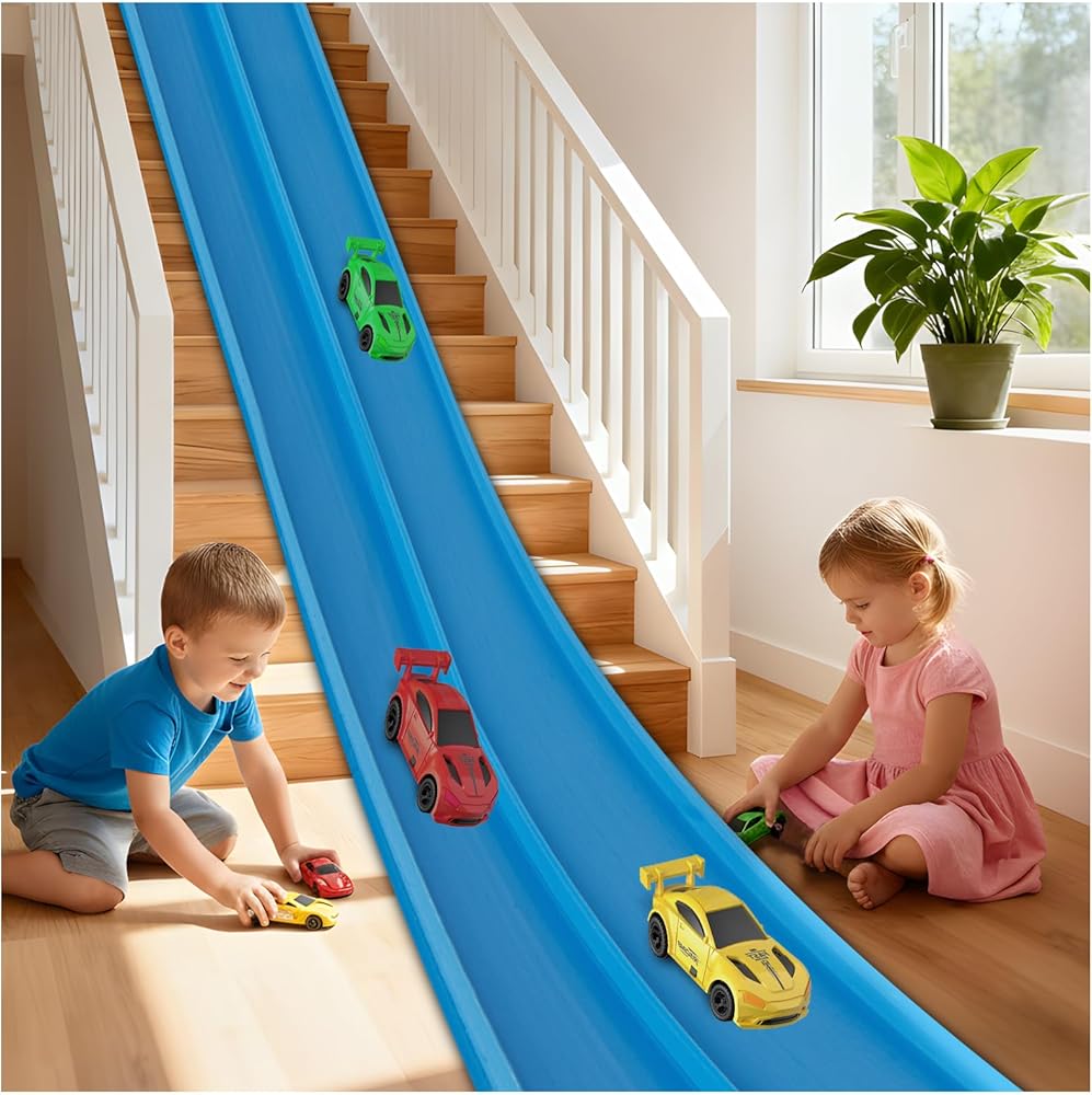 【مسار قابل للانحناء بطول 15 قدمًا لتصميمات غير محدودة】قم بإنشاء تخطيطات سباق لا نهاية لها باستخدام المسار المرن الطويل للغاية الذي يبلغ طوله 15 قدمًا، والمصمم للالتواء والانحناء وإعادة التشكيل إلى المنعطفات الحادة والمنحنيات الشبيهة بالحلقة والمنحدرات المنحدرة والتصميمات الحرة. يمكن للأطفال تحويل أي غرفة إلى مضمار سباق مخصص — أسفل الطاولة، أو حول أرجل الأثاث، أو عبر أرضية غرفة المعيشة. يصبح المسار بأكمله ملعبًا إبداعيًا يشجع الخيال وحل المشكلات واللعب المستقل.