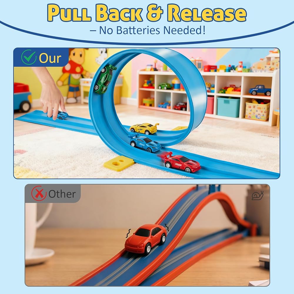 【تصميم مفتوح والتشغيل، مناسب للسفر وسهل التخزين】سيقدر الآباء المشغولون عدم التجميع والإعداد بدون ضغط - ما عليك سوى فتح المسار ويبدأ السباق في ثوانٍ. عندما ينتهي وقت اللعب، يمكن لفها مرة أخرى بشكل أنيق ووضعها في الخزانة، أو حقيبة الظهر، أو حقيبة السفر، أو الدرج تحت السرير، أو حتى صندوق السيارة، مما يجعلها لعبة سفر مثالية للإقامة في الفنادق، وأيام الشاطئ، ورحلات الطريق العائلية. لعبة نادرة تُبقي الأطفال مستمتعين دون الحاجة إلى بطاريات أو براغي أو تعليمات معقدة.