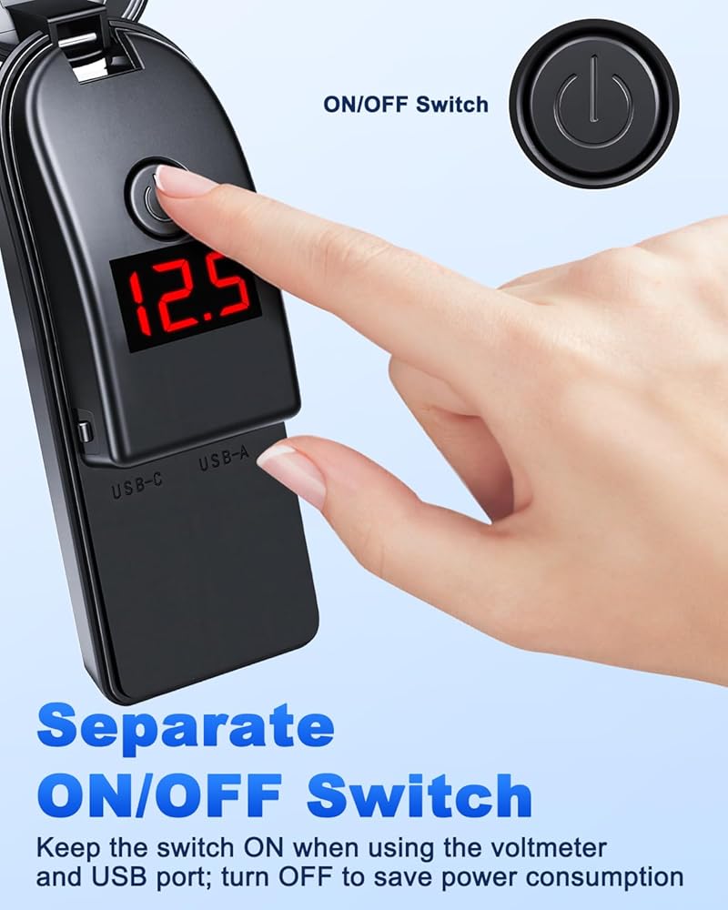 شاحن هاتف للدراجات النارية EXTRACTME، 36 وات مزدوج USB من النوع C PD 3.0 وQC 3.0 شاحن USB للدراجات النارية مع الفولتميتر ومفتاح التشغيل/الإيقاف، شحن سريع مقاوم للماء SAE إلى USB للهاتف والكمبيوتر اللوحي ونظام تحديد المواقع وما إلى ذلك