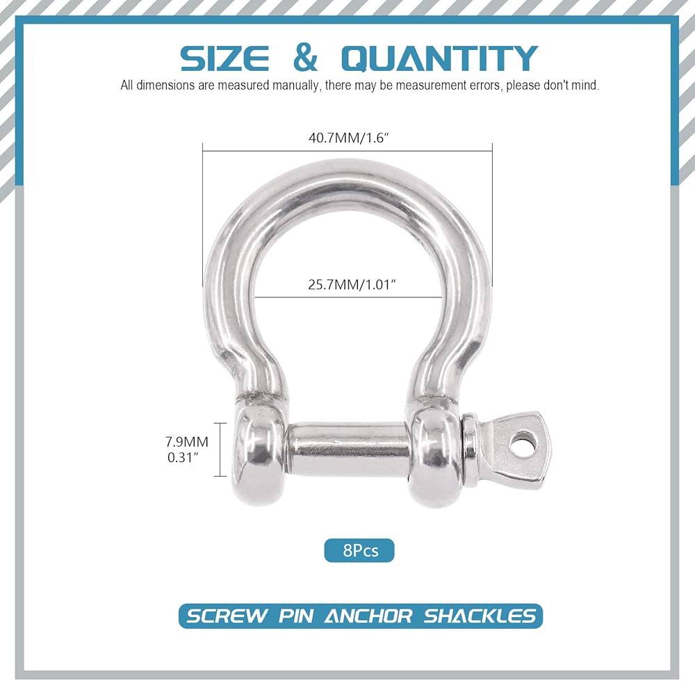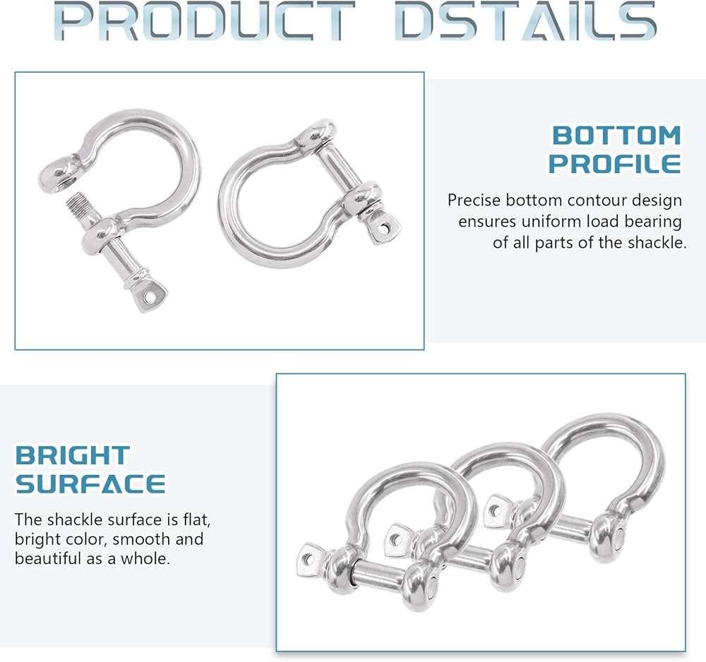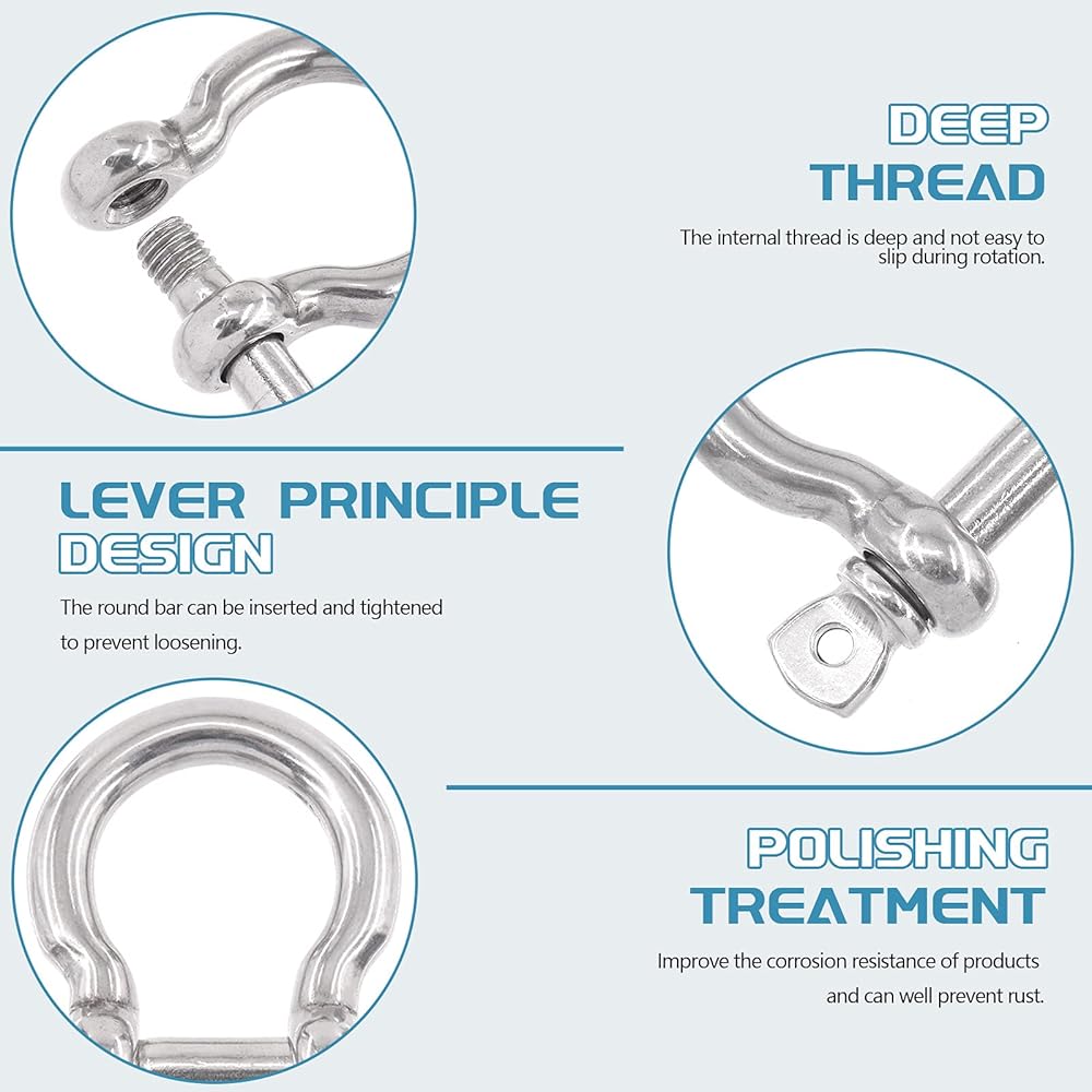 ☛ Made of high grade 304 stainless steel material, these D-ring shackles are anti-rust, wear and corrosion resistant, not easy to break or deform, durable for long time use.