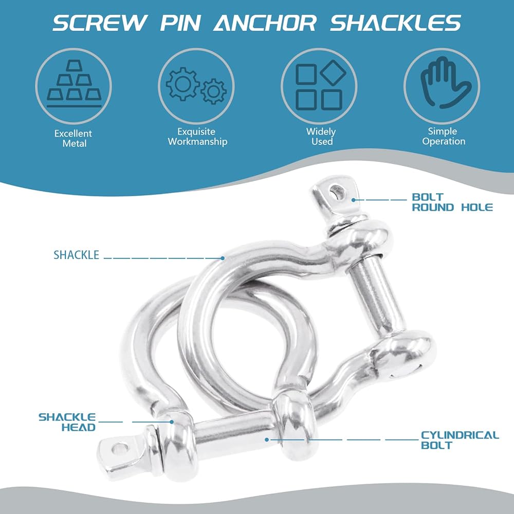 ☛ These heavy duty screw pin anchor shackles feature great bearing capacity, convenient and fast connection, and great fastening effect.