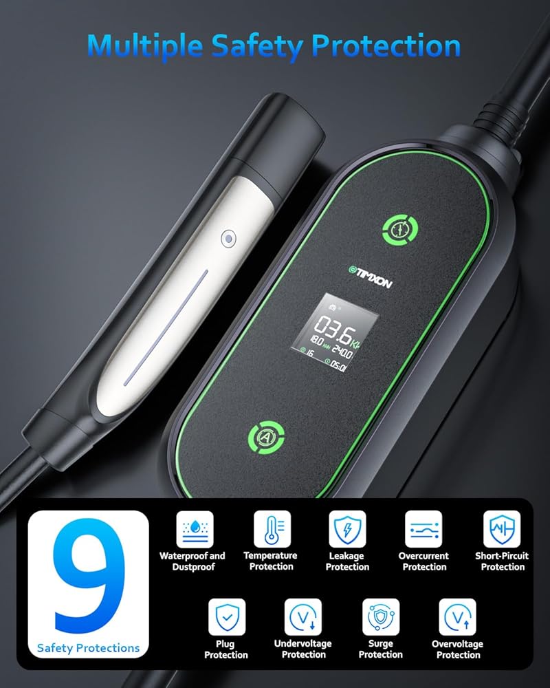 🔋【شحن سريع وفعال】 شاحن eTimxon المستوى 2 EV لـ Tesla مزود بقابس NEMA 6-20، ويدعم تيار الإخراج 240 فولت، 16 أمبير، 3.84 كيلو وات، أسرع 4 مرات تقريبًا من شواحن EV المستوى 8A، مما يقلل من وقت شحن السيارة الكهربائية، حتى تتمكن من العودة بسرعة إلى الطريق. مثالية للتنقلات في الصباح الباكر، أو المهمات في اللحظة الأخيرة، أو عطلة نهاية الأسبوع العفوية