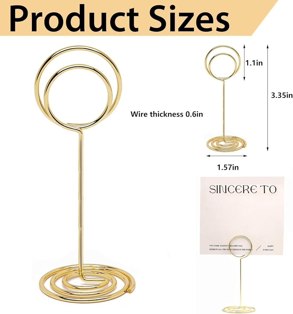 Product size: 20pcs table number holder height 8.5cm/3.35in, line thickness 1.5mm/0.59in, top circle 2.8cm/1.1in, bottom circle 4cm/1.57in