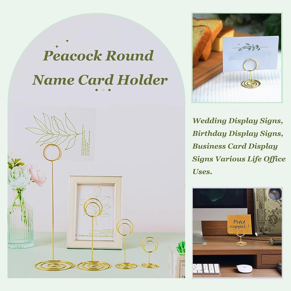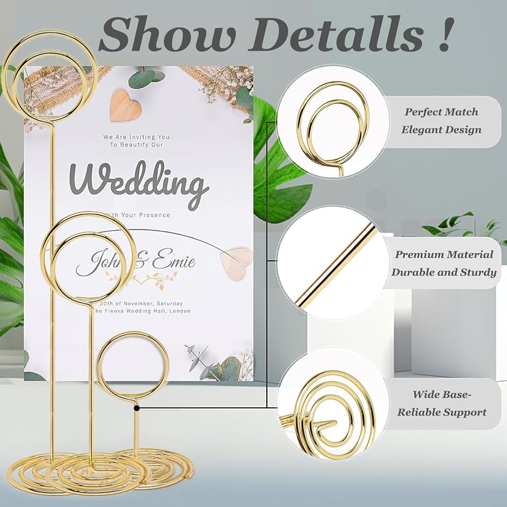 Product material: Desktop card holder is made of high quality wire material, stable, not easy to bend; Light weight, small size, easy to carry and move; The gold-plated surface makes it look shiny and durable