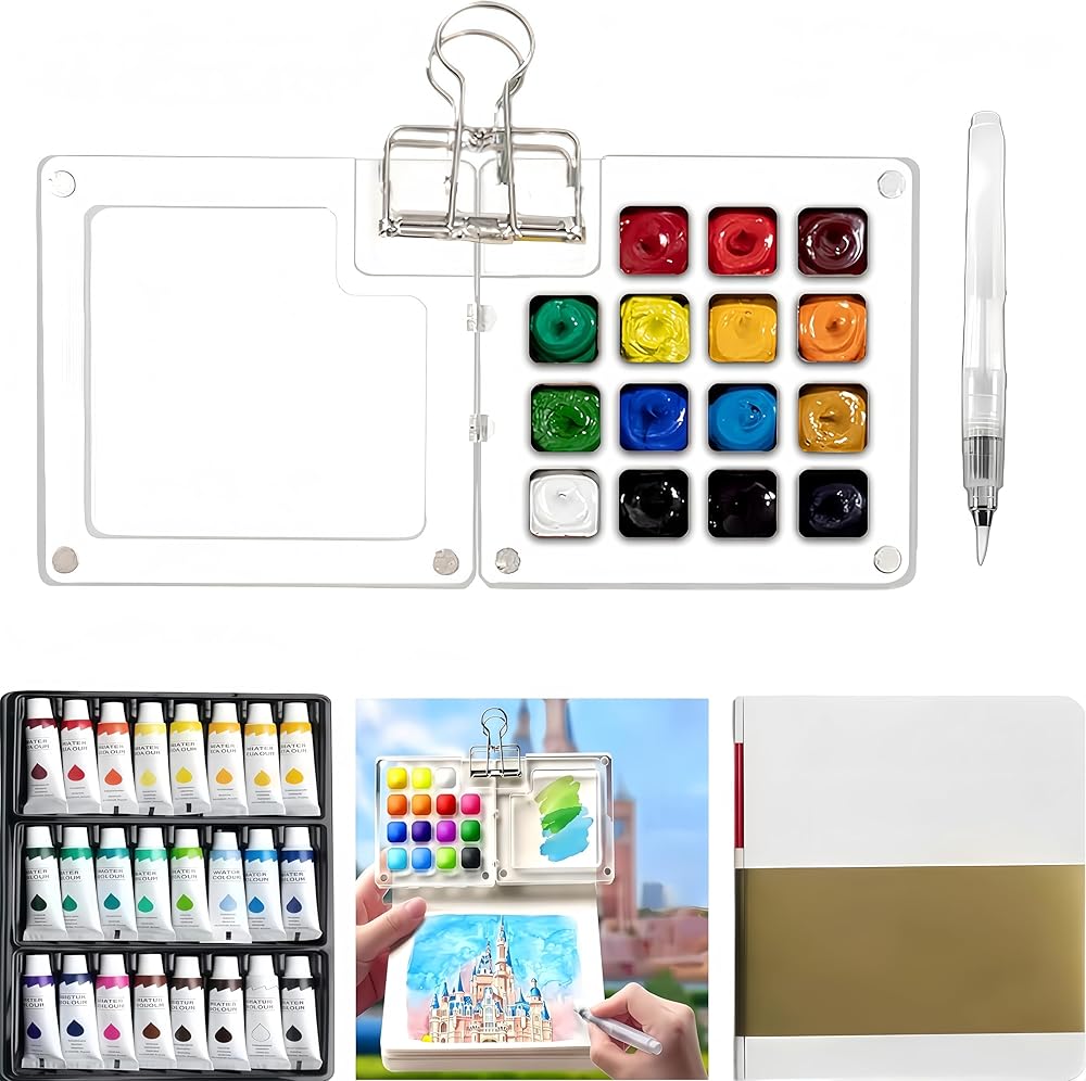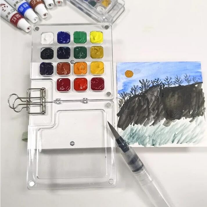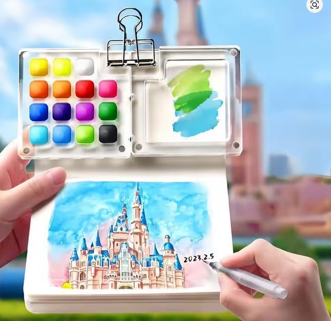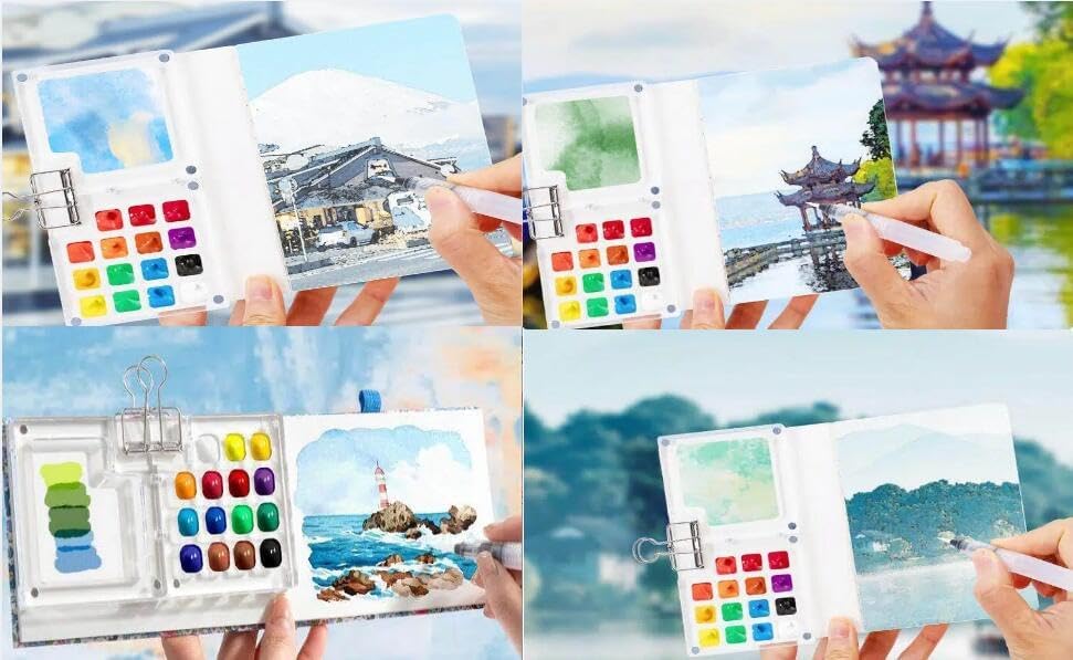 【استخدام واسع】هذه المجموعة مثالية للفنانين المحترفين ورسامي السفر والمبتدئين وأي شخص يحب الرسم بالألوان المائية. ما عليك سوى الإمساك باللوحة بيد واحدة والفرشاة باليد الأخرى لإنشاء عملك