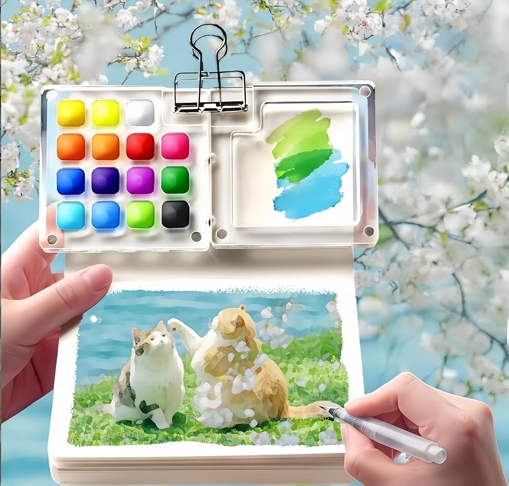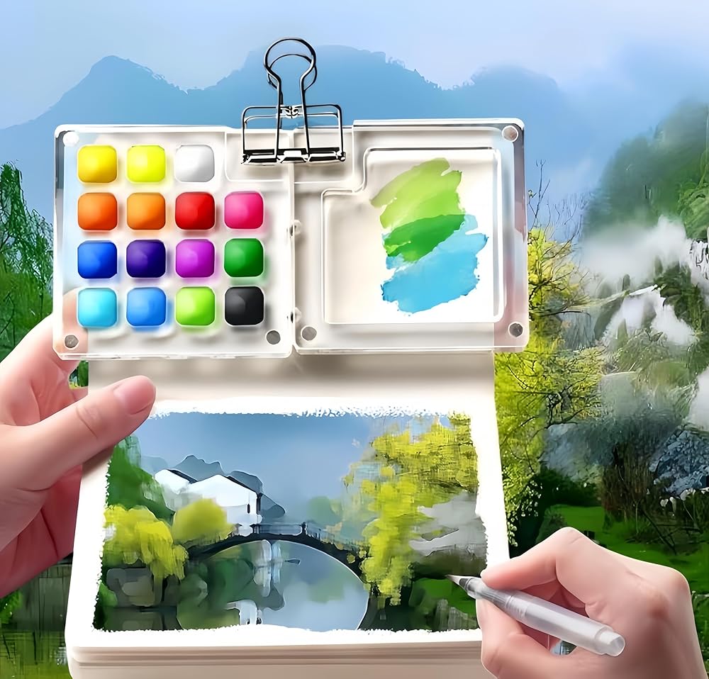 صغير الحجم وقابل للحمل: مع مجموعة ألوان مائية للسفر متوفرة بمقاسين للسفر (8 ألوان: 2.36 بوصة × 2.36 بوصة؛ 15 لونًا: 5.67 بوصة × 2.83 بوصة)، فهي خفيفة الوزن وسهلة الحمل، ومثالية للرسم في الهواء الطلق أو أثناء التنقل.