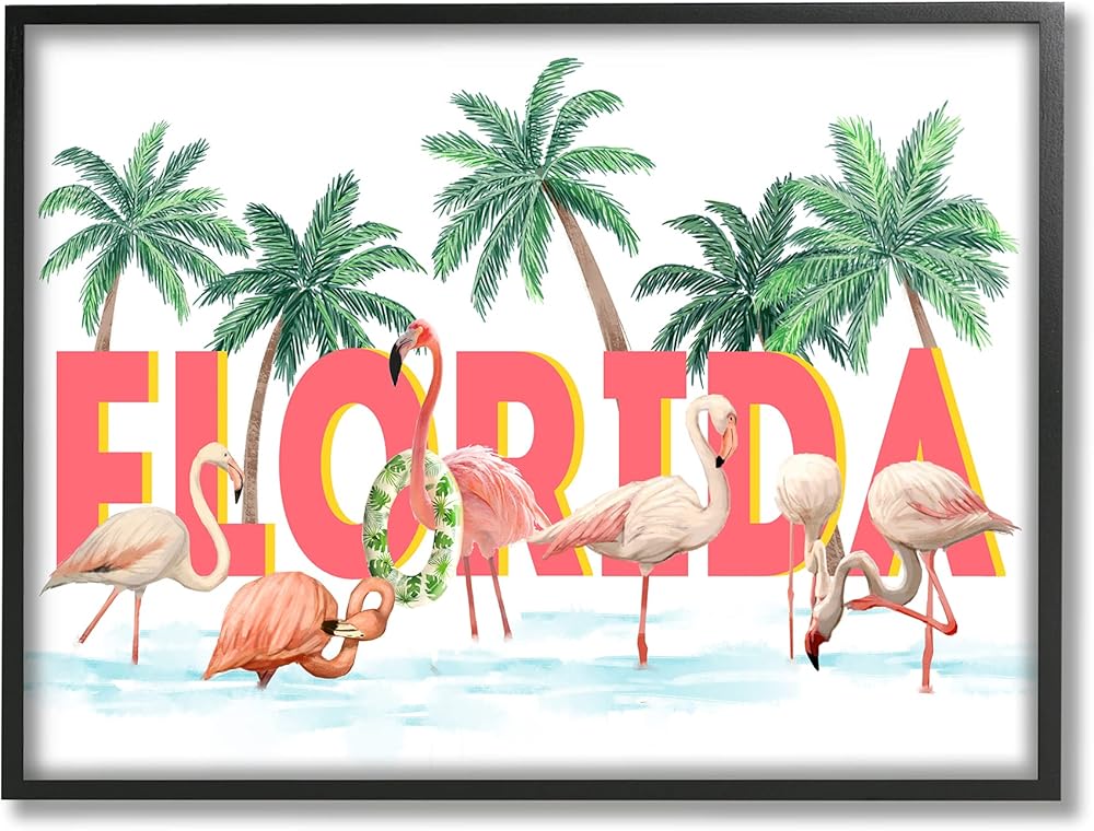 لوحة فنية جدارية مؤطرة بمسبح فلامنجو فلوريدا من ستوبيل إندستريز مع أشجار النخيل الاستوائية الخضراء