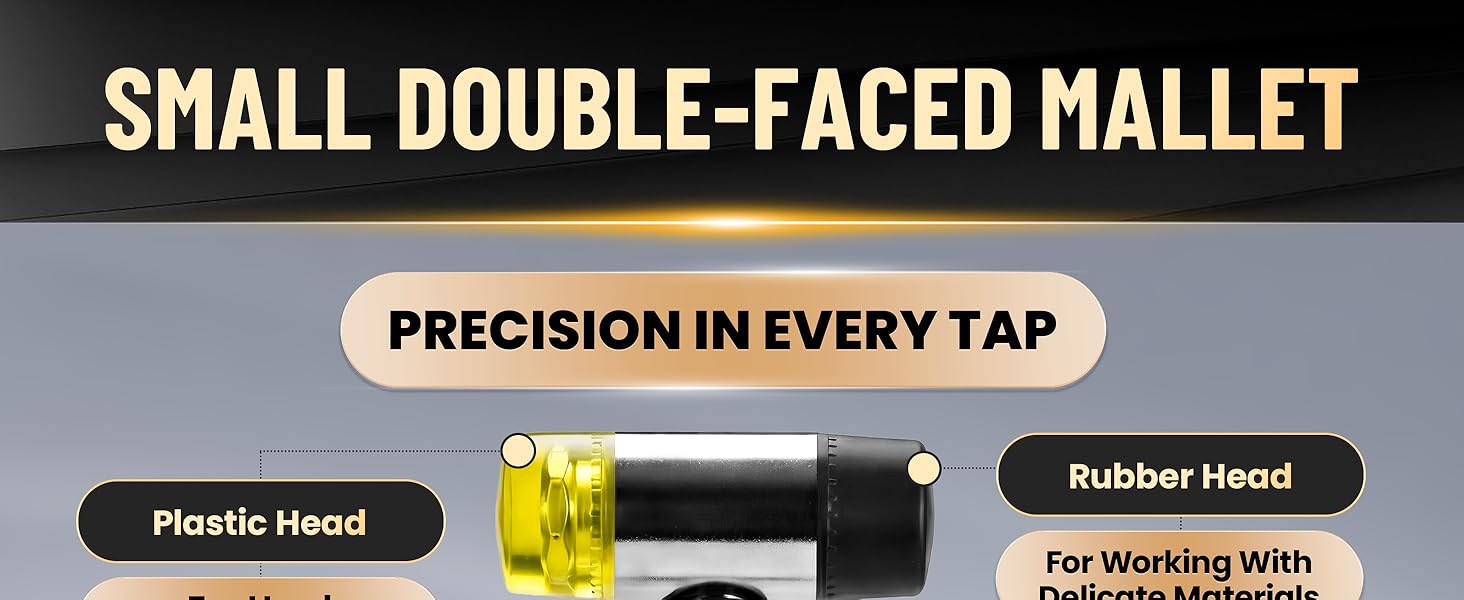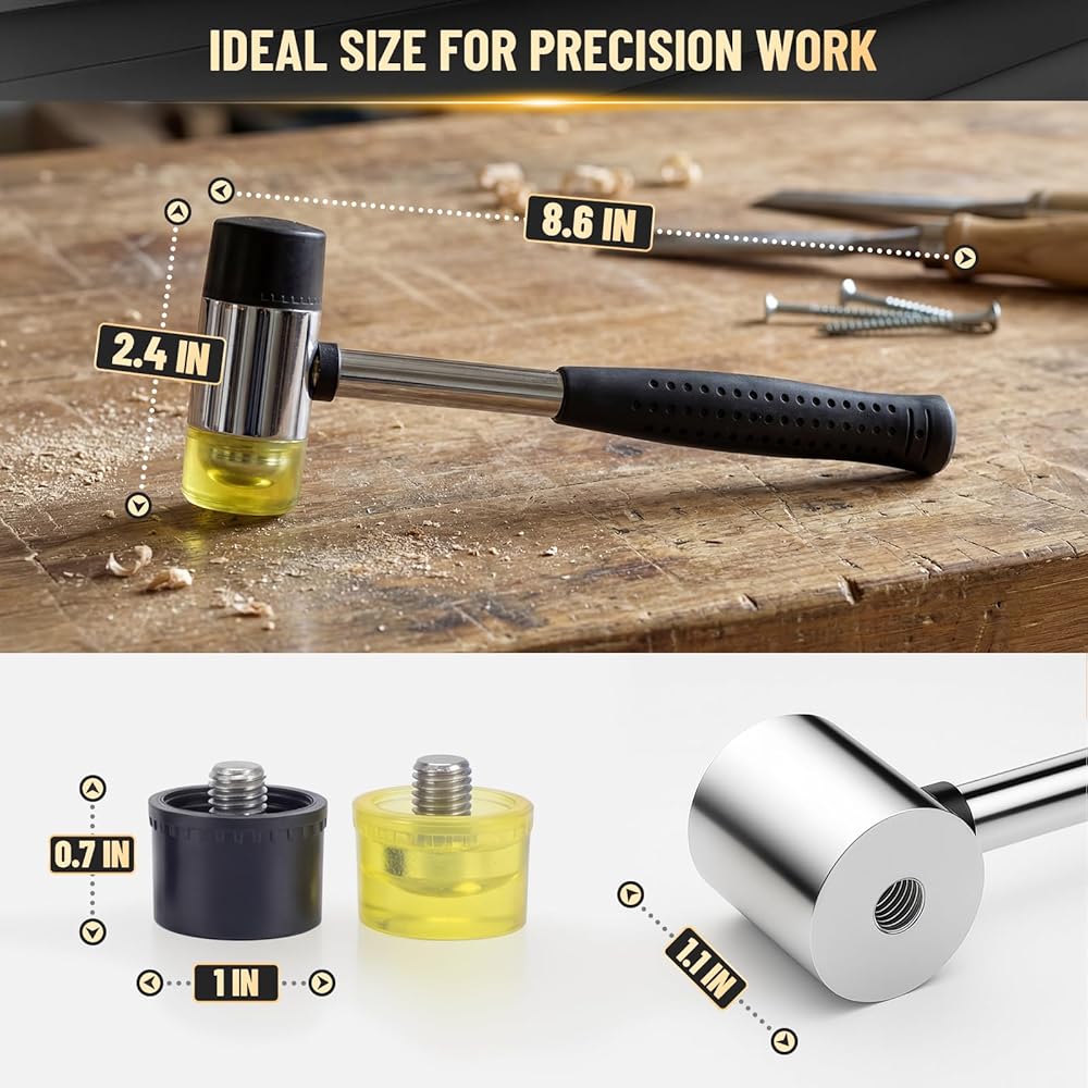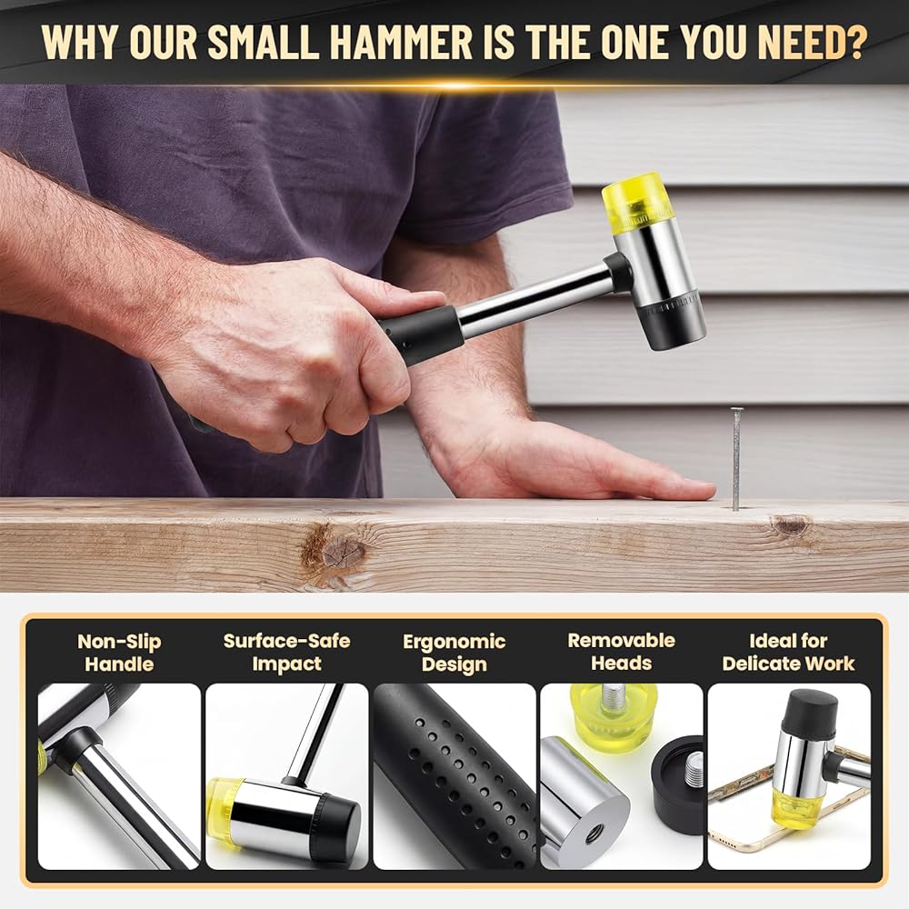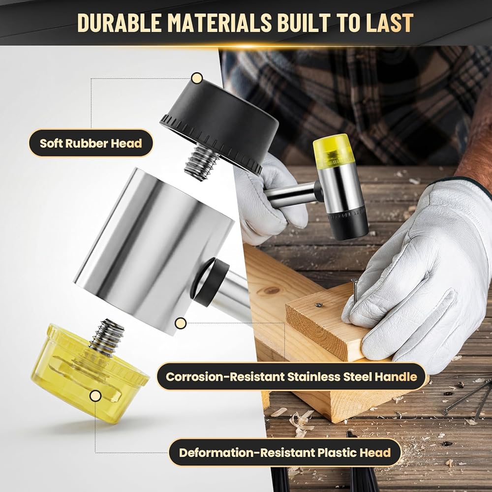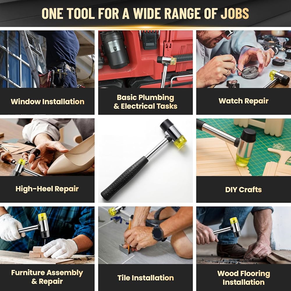 【تصميم ممتاز مزدوج الوجه】 مطرقة مطاطية 25 مم برؤوس ناعمة مزدوجة - واحدة مطاطية وواحدة من البلاستيك - توفر ضربات دقيقة دون إتلاف الأسطح، مثالية للمجوهرات والأرضيات والمشروعات اليدوية.