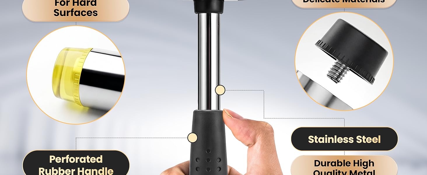 【بناء متين ومقاوم للصدمات 】 نواة فولاذية عالية القوة ورأس مطاطي مرن يوفران أداءً دائمًا. يمتص التأثير بشكل فعال للحصول على ضربات سلسة يمكن التحكم فيها في كل مرة