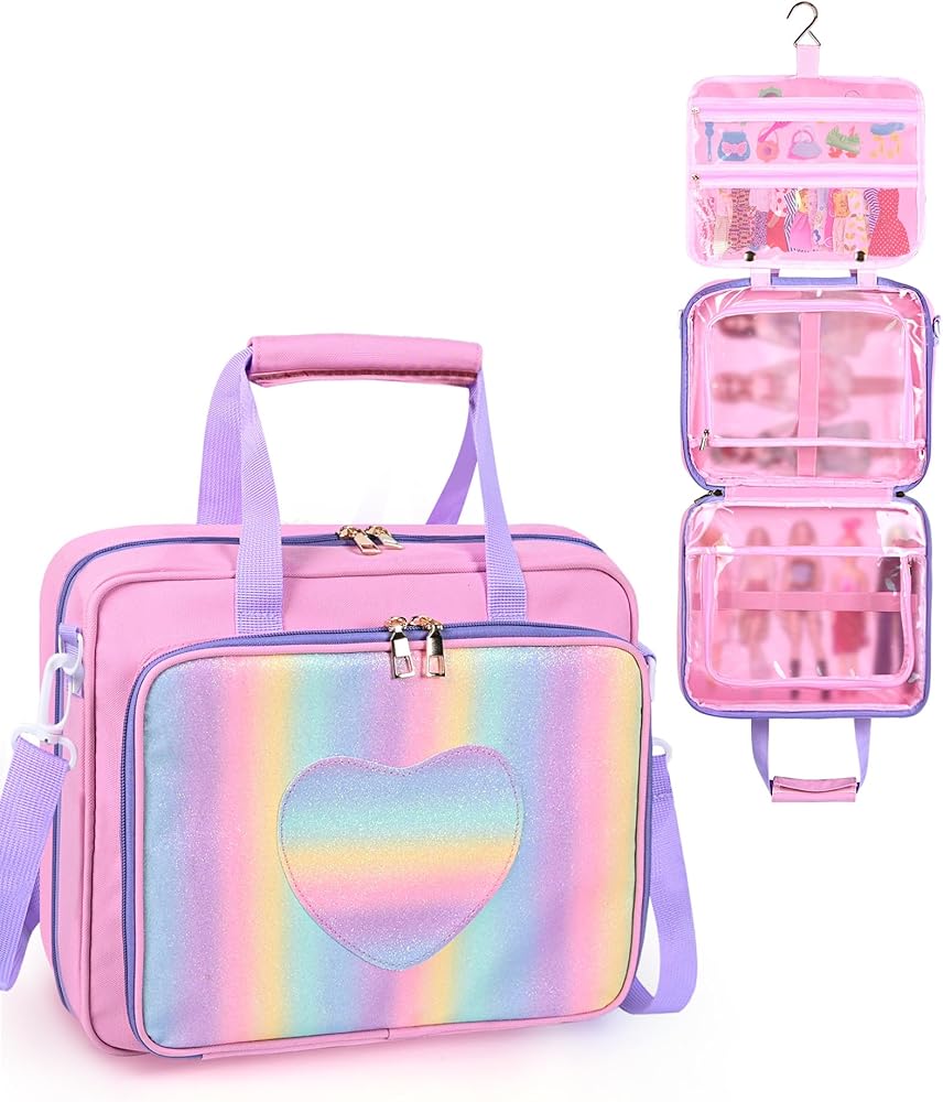 • شكل خارجي لطيف على شكل قلب قوس قزح: تتميز بلوحة قلب لامعة نابضة بالحياة بألوان قوس قزح، تتميز حقيبة تخزين الدمى الرائعة هذه بتصميم سحري ملون يحبه الأطفال. إنه منظم عملي للدمى وإكسسوار أنيق لغرف اللعب أو السفر أو المدرسة أو تقديم الهدايا. مثالية لأعياد الميلاد أو الكريسماس أو أي مجموعة لمحبي الدمى.