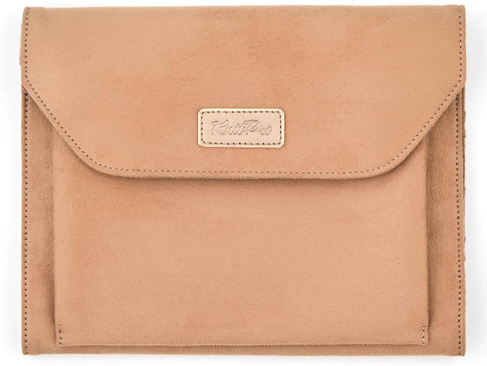 The KnitPro Double Pointed Needle Case offers an elegant and practical way to store up to 16 sets of double pointed needles. Crafted from soft artificial suede, the foldable envelope-style case closes with magnetic buttons for secure storage. Inside, a double row of labelled pockets ensures easy organisation, with a protective flap to keep needles in place. The 2 additional zippered pockets on the front and back provide space for accessories. Measuring 22 x 17.5 x 1.5cm when closed, it's a compact and stylish companion for any knitter.
