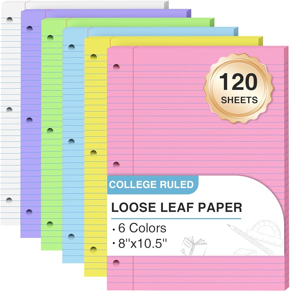 [ورق أوراق فضفاض ملون]: يتضمن ورق الأوراق السائب الملون 120 ورقة من الورق الملون الفاخر مقاس 8 × 10.5 بوصة، مما يوفر 20 ورقة من كل لون نابض بالحياة: الأبيض والأصفر والأزرق والوردي والأخضر والأرجواني. مثالي للحرف اليدوية والكتابة وتنظيم الملاحظات والمشروعات المدرسية، يوفر الورق المبطن الملون مقاس 8 × 10.5 مجموعة متنوعة من الألوان لتلبية احتياجاتك. تم تصميم كل ورقة مثقوبة بثلاثة ثقوب للتعامل مع مجموعة من المهام، بدءًا من الواجبات المنزلية وحتى العروض التقديمية، بجودة ألوان زاهية ومتسقة