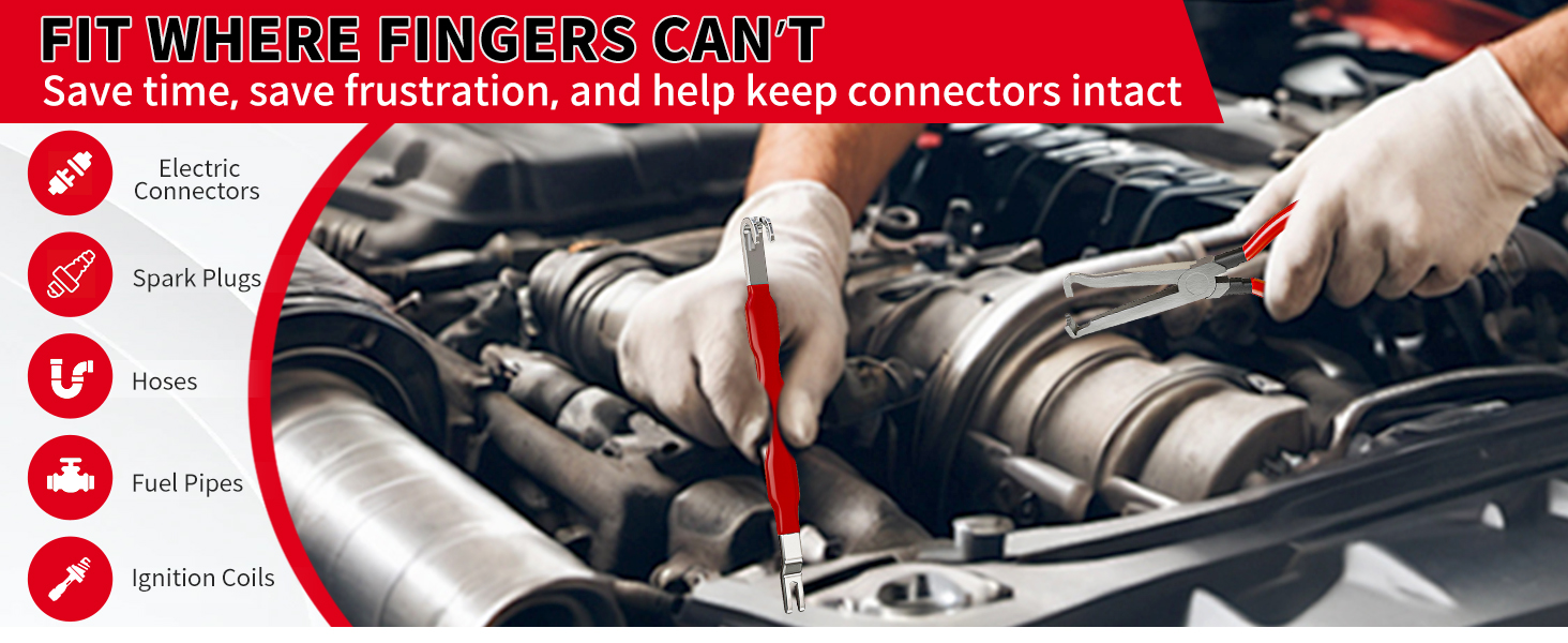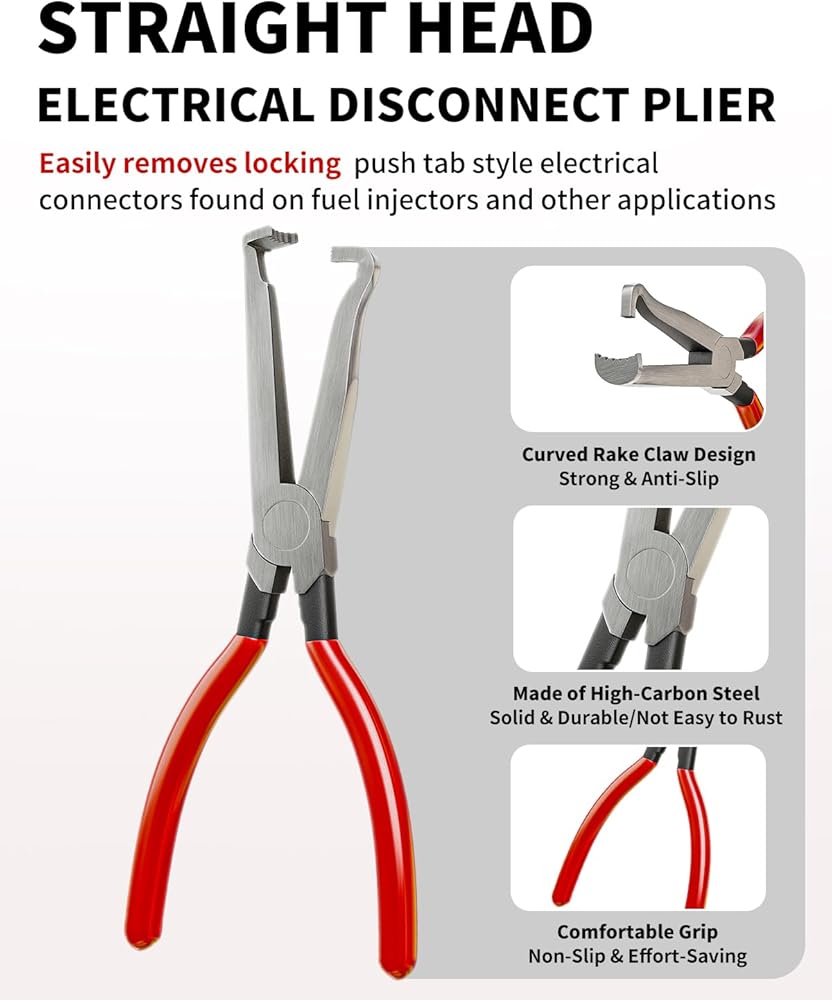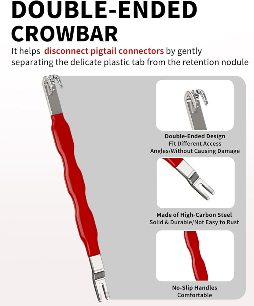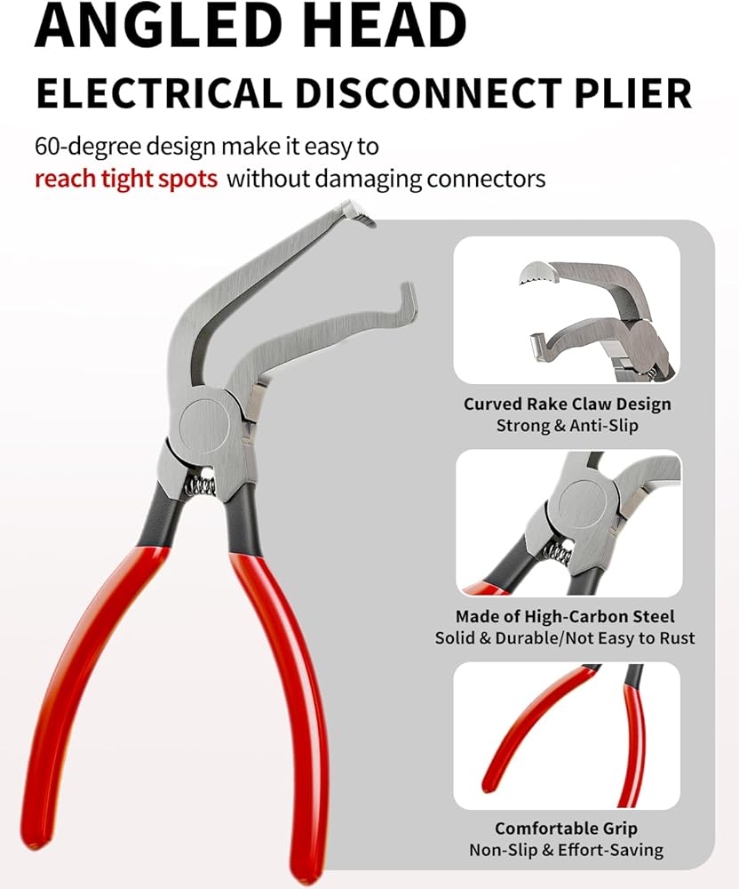 بسيطة ولكنها فعالة: تم تصميم مجموعة كماشة الفصل الكهربائية هذه لدوائر السيارات. رأس بزاوية 60 درجة وتصميم مزدوج للرأس المستقيم، يسهل التعامل مع الموصلات الإضافية في أجهزة استشعار تدفق الهواء، وحاقن الوقود، وملفات الإشعال وغيرها من المواقع. اسحب العروة للخارج باستخدام طرف الخطاف لفتحها، ثم ثبت العروة واسحبها للخارج لفصل الموصل عن المستشعر دون تلف - بنفس سهولة فتح حافظة الهاتف الخلوي