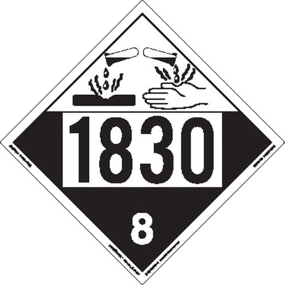 تأكد من امتثالك الكامل عند نقل حمض الكبريتيك باستخدام الملصقات المسببة للتآكل UN 1830 من Labelmaster. هذه اللافتات DOT المطبوعة مسبقًا برقم الأمم المتحدة المكون من أربعة أرقام هي ما تحتاجه لشحن حمض الكبريتيك وتلبية متطلبات 49 CFR 172.500 للشحنات المحلية والدولية من المواد الخطرة عن طريق الطرق السريعة والسكك الحديدية والمياه. تتم طباعتها على الفينيل الصلب فائق القوة الذي يشيع استخدامه في الرحلات المتعددة وفي الظروف الجوية القاسية. يوصى باستخدام هذه اللوحات من الفئة 8 في حاملات Slidemaster، ويبلغ قياسها 273 × 273 مم وتباع في عبوات مكونة من 25 أو علبة بها 500.