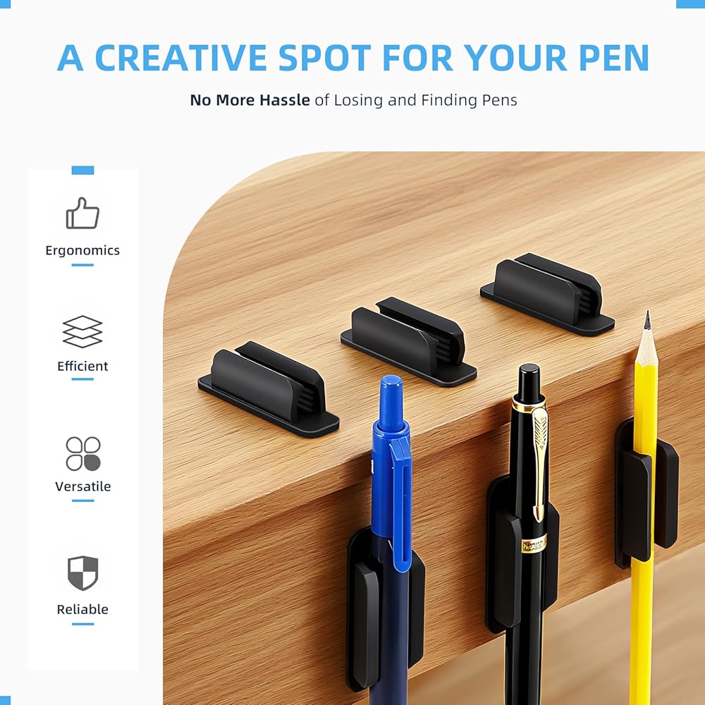 10 قطع من حامل الأقلام، حامل أقلام لاصق مطور للمكتب، حامل أقلام رصاص من السيليكون المرن، مشبك لمشبك حائط المكتب، مستلزمات المعلم الأساسية للمكتب، أسود