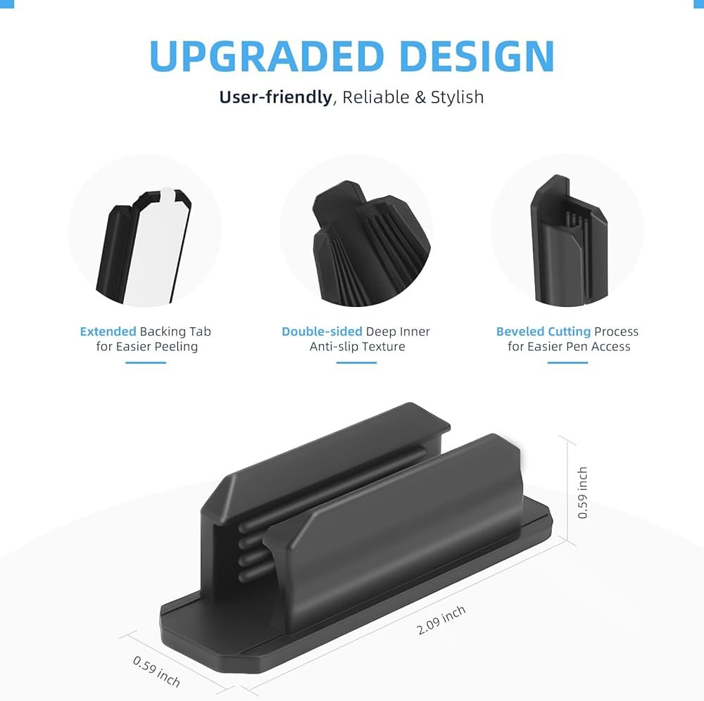 • تصميم محسّن مضاد للانزلاق: مع تصميم محسّن داخلي عميق مضاد للانزلاق على الوجهين، تم تصميم حامل الأقلام اللاصق الخاص بنا للمكتب ليحمل أحجامًا مختلفة من الأقلام بقوة، لا مزيد من المتاعب في فقدان الأقلام والعثور عليها، حامل أقلام مثالي للمكتب والجدار