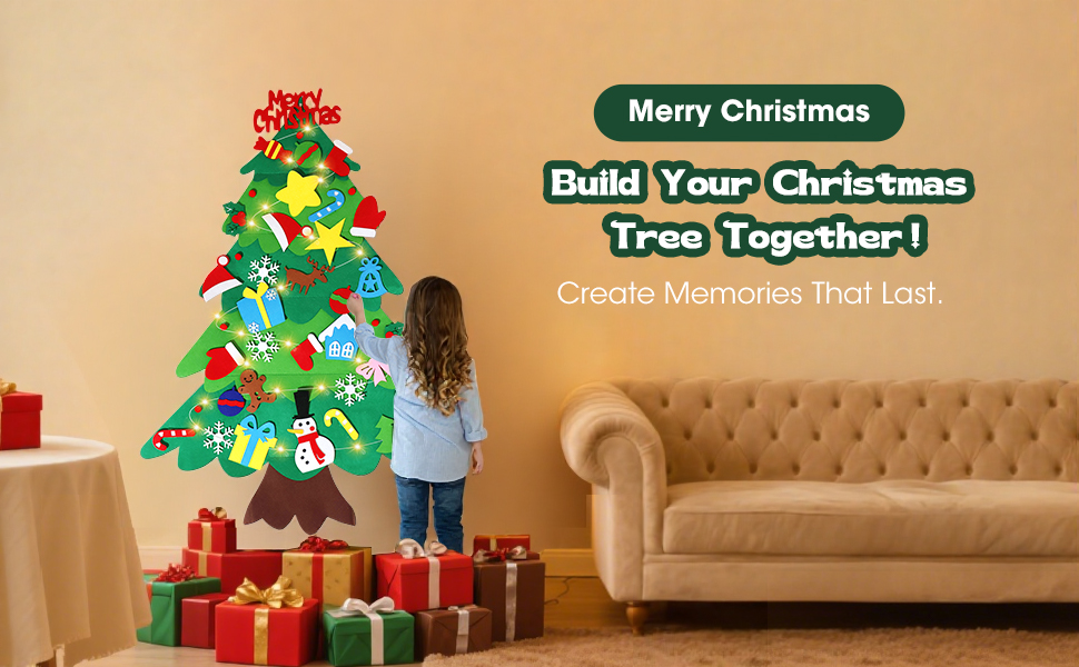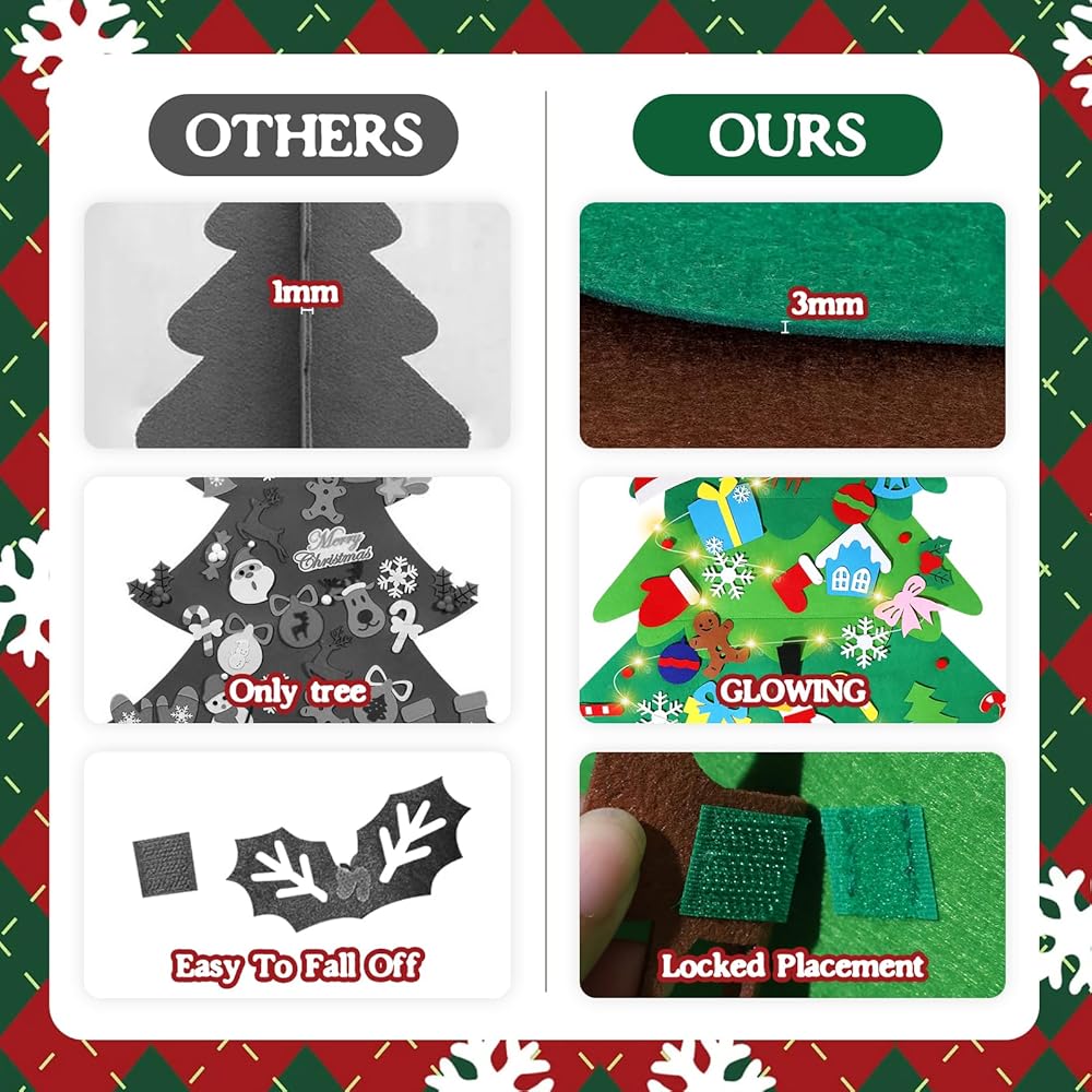 ديكور عطلات متين وقابل لإعادة الاستخدام - مصنوع من لباد سميك وغير سام وآمن للأطفال بعمر 18 شهرًا فما فوق. يمكن طيها لسهولة التخزين ويمكن إعادة استخدامها سنة بعد سنة للتقاليد العائلية.