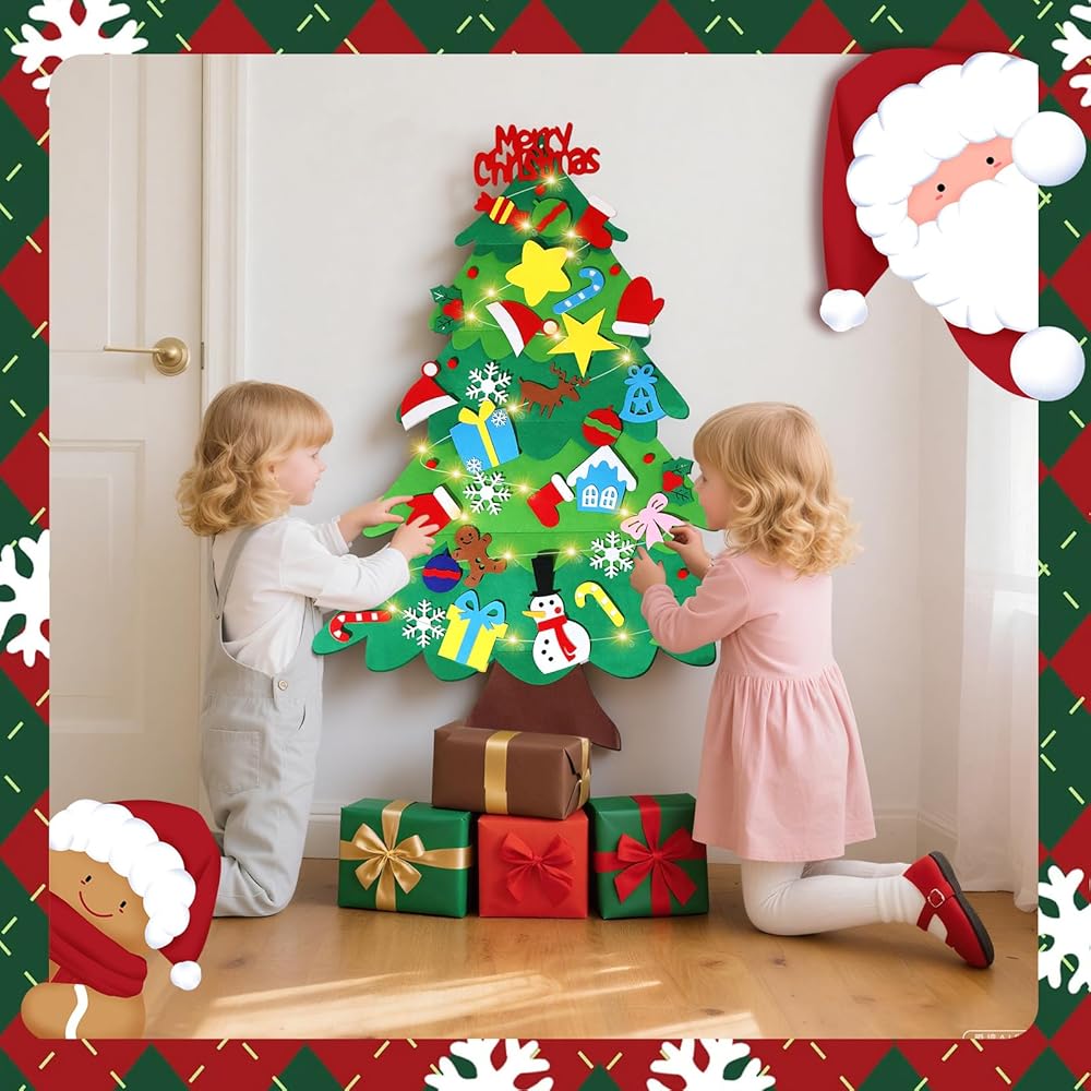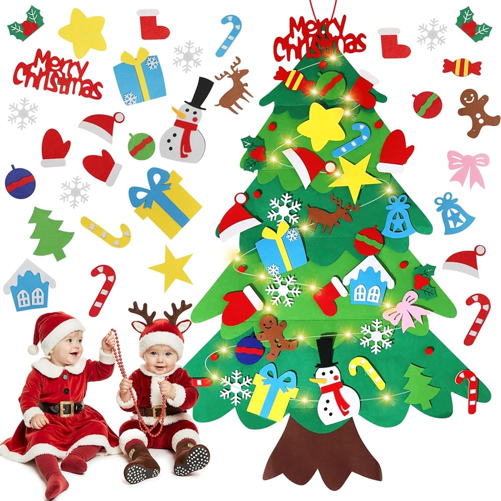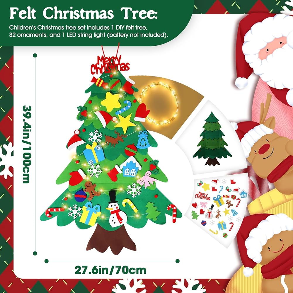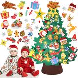 شجرة عيد الميلاد للأطفال مع 32 قطعة زينة، شجرة عيد الميلاد للأطفال مثبتة على الحائط بطول 3.3 قدم، شجرة عيد الميلاد بخطاف وحلقة من مونتيسوري ذاتية الصنع للأطفال الصغار، ديكور عطلة الأطفال قابل لإعادة الاستخدام