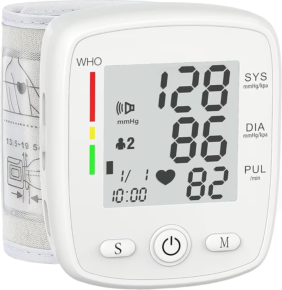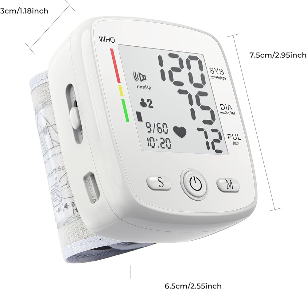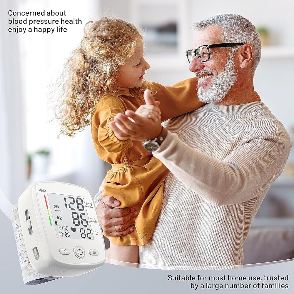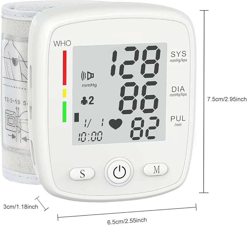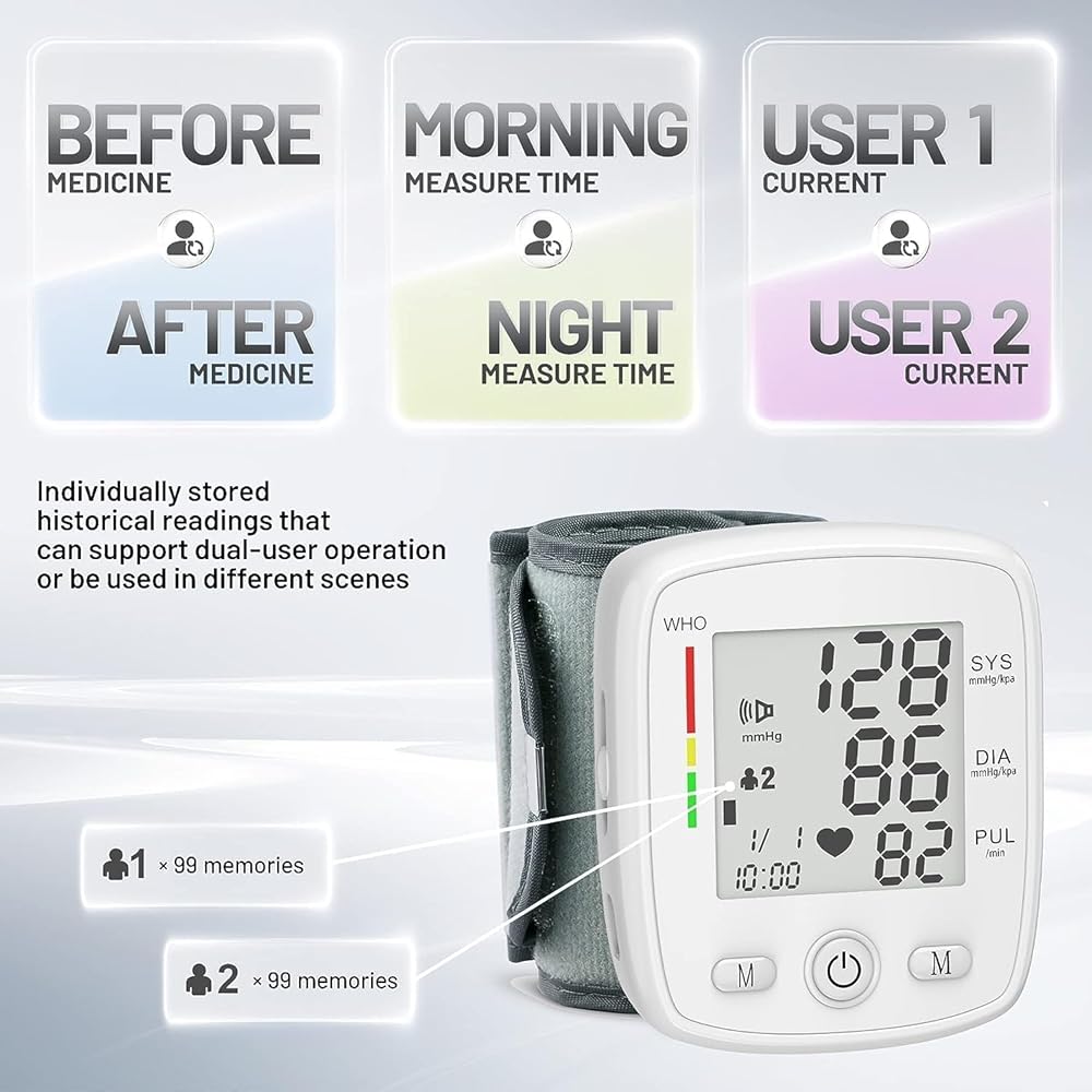 جهاز مراقبة ضغط الدم من المعصم، جهاز قياس ضغط الدم الرقمي، جهاز ضغط الدم القابل لإعادة الشحن، مزود بذاكرة 2 × 99 قراءة، شاشة LCD كبيرة الحجم، بث صوتي، حقيبة حمل محمولة