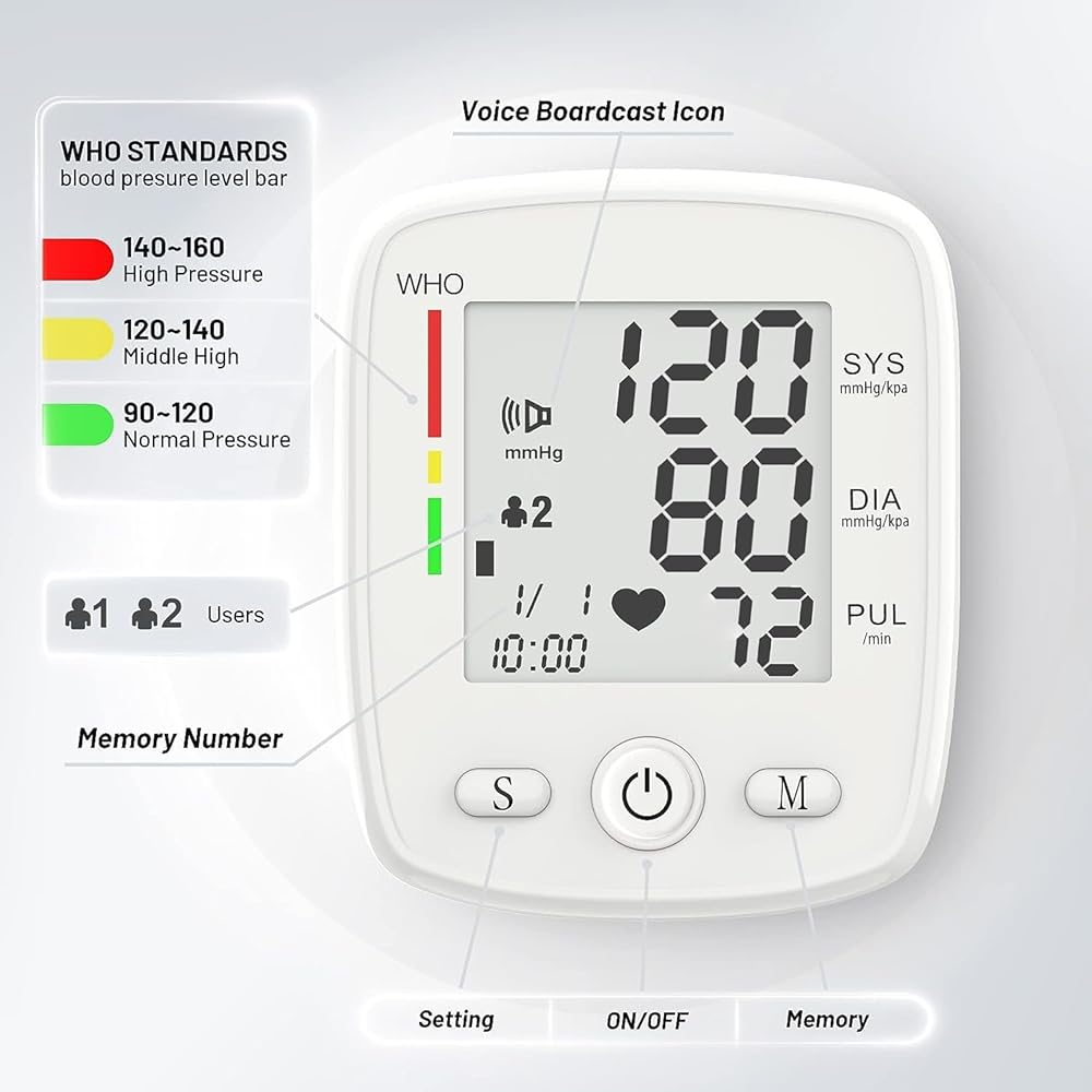 سهل الاستخدام: سهل الاستخدام بزر واحد، مريح للقراءة مع شاشة LCD كبيرة وبث صوتي واضح، يمكنك الحصول على قراءات في غضون 45 ثانية