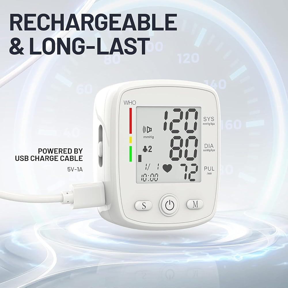 سوار BP قابل لإعادة الشحن: تخلص من استبدال البطاريات بشكل متكرر، يستغرق الشحن الكامل من 2 إلى 3 ساعات ويمكن استخدامه بشكل مستمر لمدة 20 يومًا تقريبًا، محول الشحن غير متضمن في العبوة