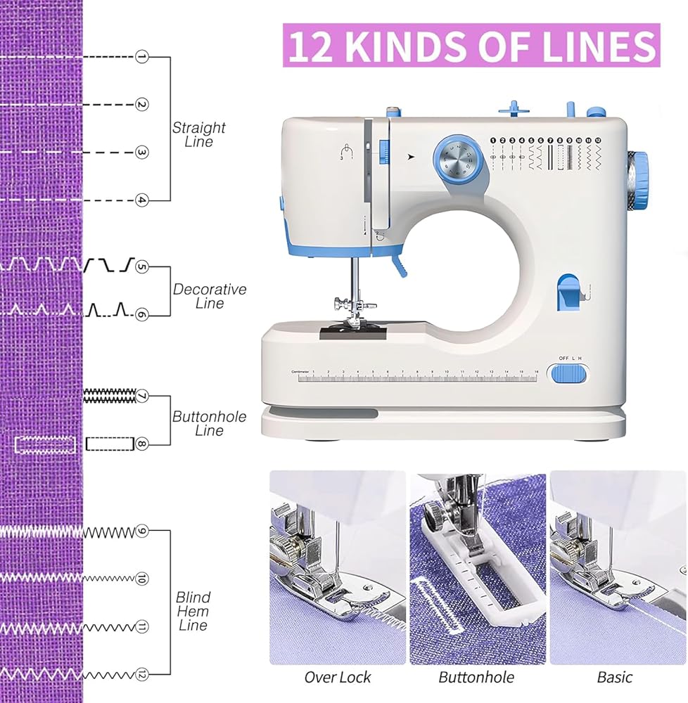Versatile Stitchingns: With 12 stitching modes including straight stitches, zigzag stitches, and decorative patterns, this sewing machine caters to all your sewing needs. Plus, the reverse sewing function ensures neat and sturdy stitches every time.