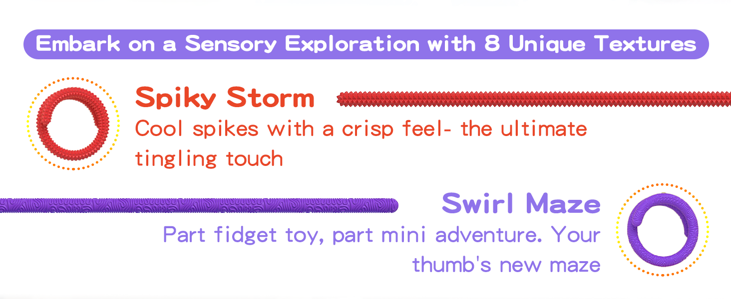 • 【تجربة حسية لمسية فريدة من نوعها】تحتوي عصا التململ هذه على أنسجة متنوعة توفر تحفيزًا حسيًا مستهدفًا - مثالية لتلبية الاحتياجات الحسية المرتبطة بسلوك التقاط الجلد، مما يوفر بديلاً أكثر أمانًا للتململ.
