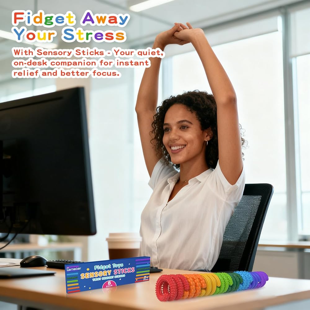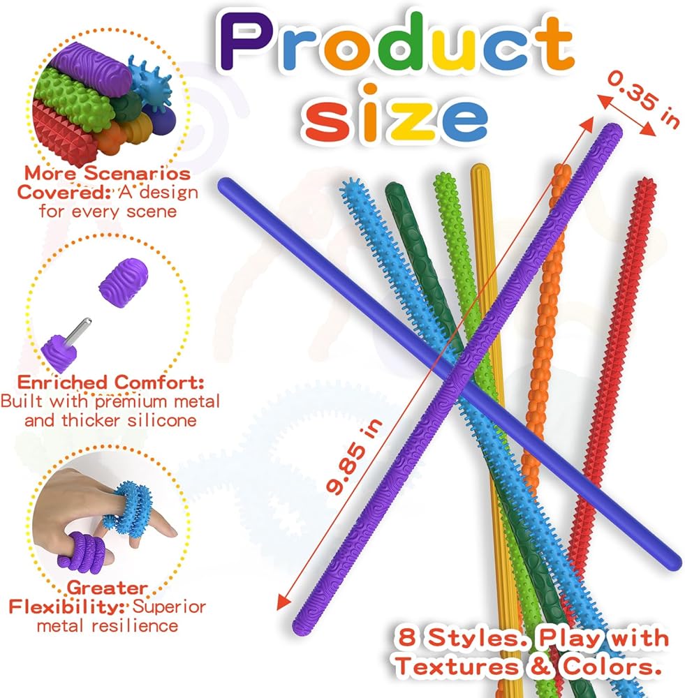 ألعاب تململ حسية للأطفال، 8 عبوات من العصي الحسية، لعبة تململ الإجهاد للفصل الدراسي والقلق والتوحد واضطراب فرط الحركة ونقص الانتباه، ألعاب سيليكون مرنة لمكاتب المكاتب للبالغين، والسفر، والطائرة.