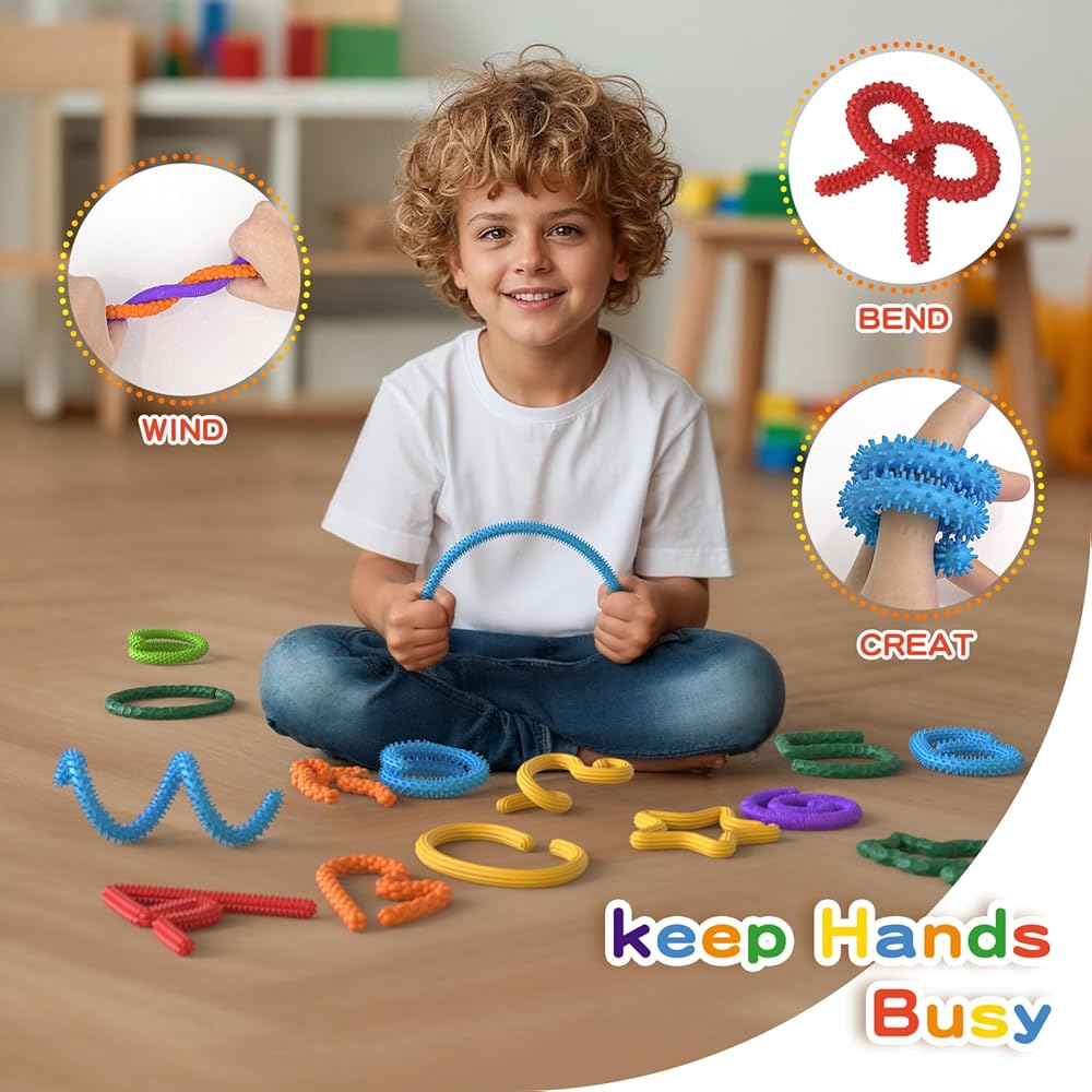 • 【تصميم مبتكر لعصا التململ 】تتميز عصا التململ هذه عن الألعاب الحسية التقليدية، بفضل السيليكون المتين المتين. إنها توفر تجربة فريدة من نوعها - تعمل باللمس، وقابلة للتدوير، ومرنة - مما يجعلها أكثر جاذبية للعب بها.