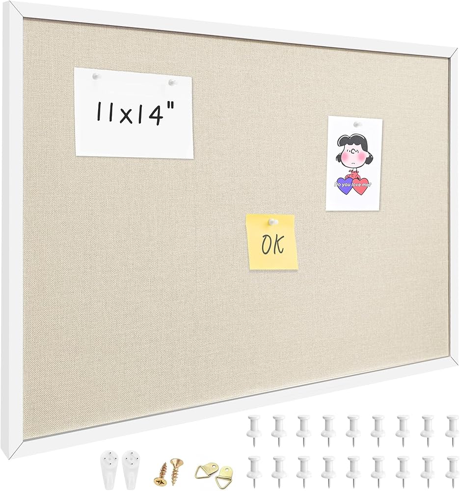 لوحة فلين مقاس 11 × 14.5 بوصة للتعليق على الحائط مع الكتان، لوحة إعلانات مع دبابيس دفع، لوحة رسائل مذكرة مثبتة لديكور المنزل والمكتب، وأساسيات غرفة النوم، وتنظيم الفصول الدراسية