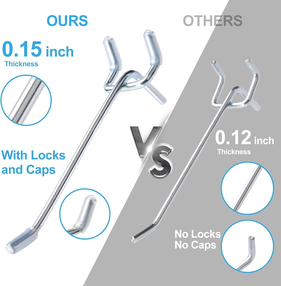 ما تحصل عليه: 50 قطعة من خطافات بيجبورد معدنية فاخرة مقاس 10.16 سم و150 قطعة من أقفال/قبعات الأوتاد.