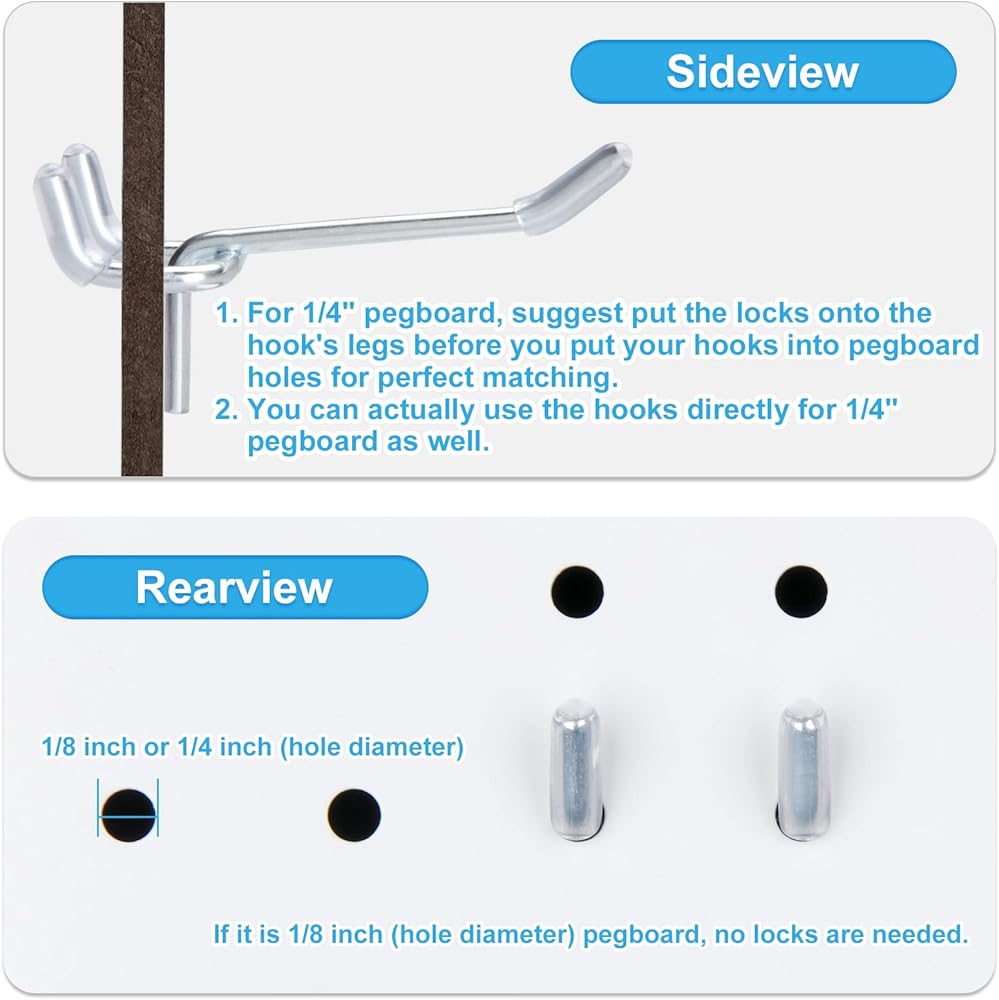بالنسبة للوحة التعليق مقاس 1/8 بوصة، قد لا تكون هناك حاجة إلى أقفال لتأمين الخطافات. لذلك، يمكنك استخدام الخطافات مباشرة.
