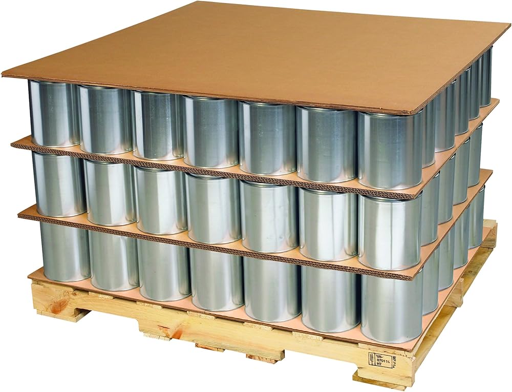 صفائح مموجة ثلاثية الجدران مقاس 48 × 48 بوصة. استخدم صفائح مموجة ثلاثية الجدران بين طبقات الآلات والأجهزة الثقيلة. مصنوعة من 1100#tw/ect-90 كرافت مموج. يوفر متانة وقوة إضافية. يحمي المنتجات من أضرار الرافعة الشوكية.