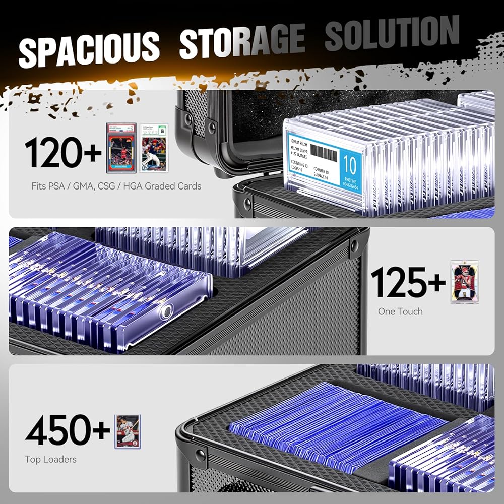 Spacious Capacity: It can hold approximately 70 Top Loaders, 19 One Touch, or 18 Graded Card (varies by thickness), meeting diverse collection storage needs.