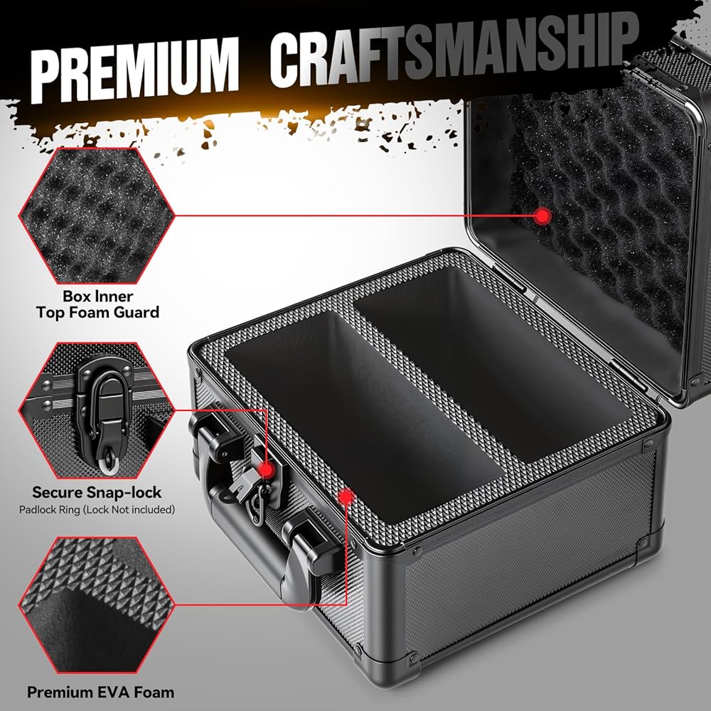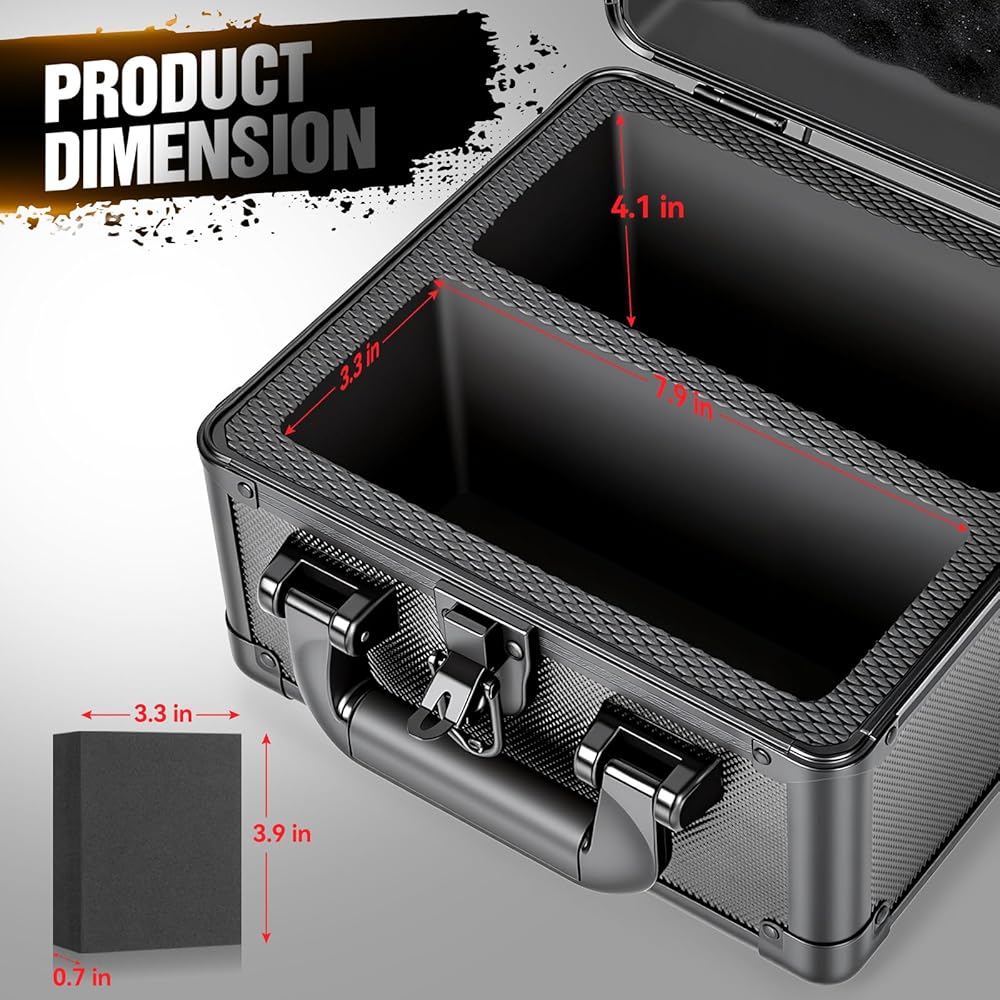 Max Protection: Equipped with 2 foam dividers to prevent sliding and collisions. Sturdy structure keeps cards safe from scratches and damage. Designed with a loop and quick-snap closure (lock not provided), this box delivers customizable security for your graded cards.