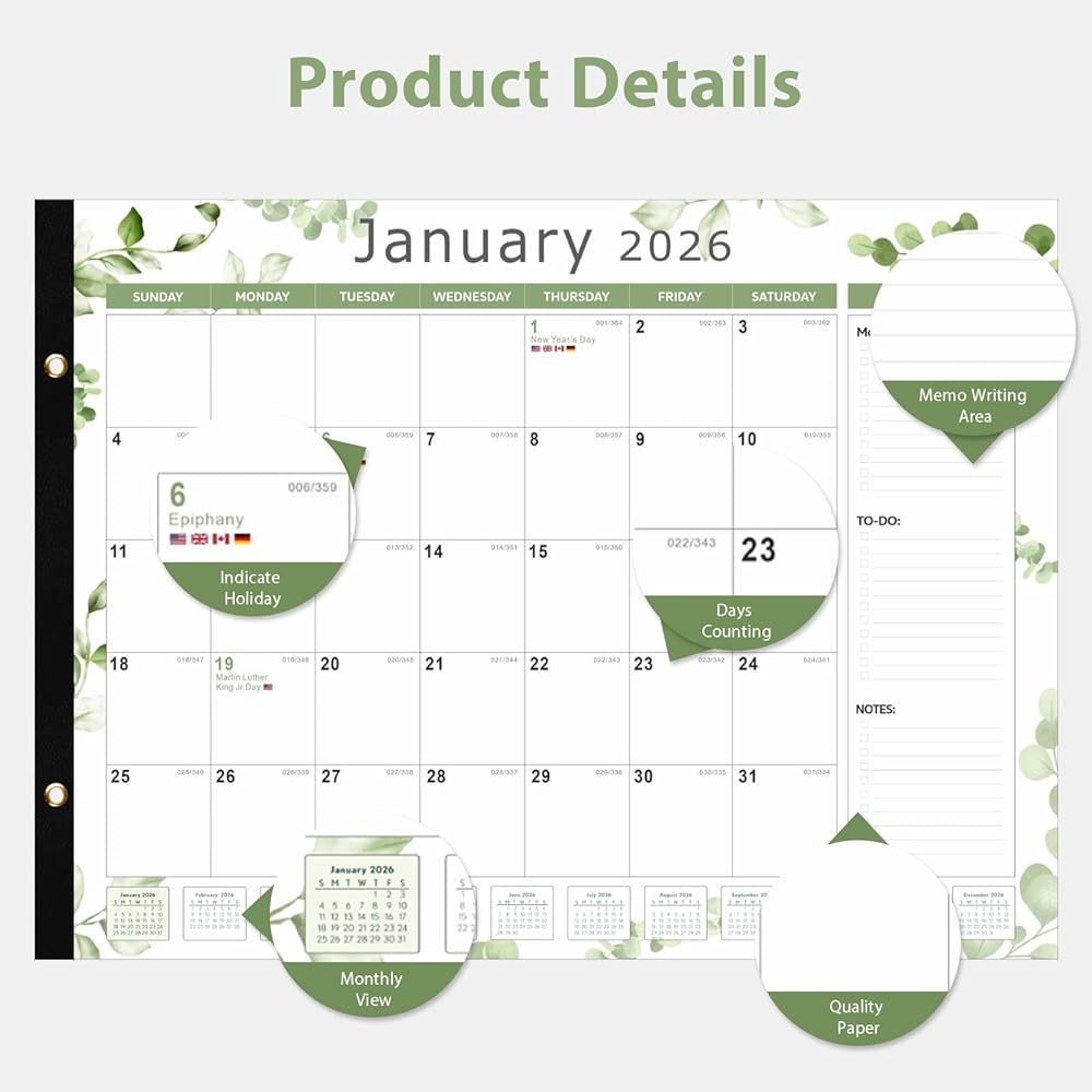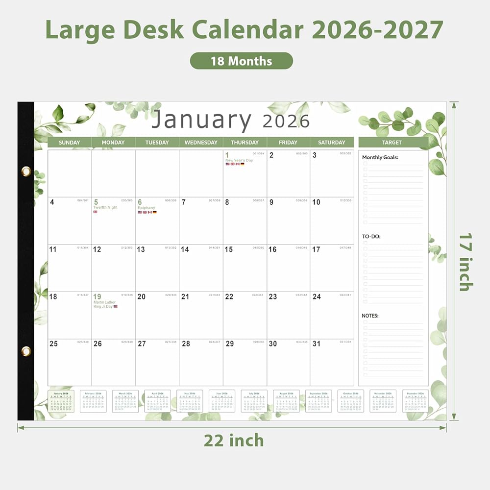 [تغطية التواريخ المهمة] - يغطي تقويم المكتب هذا جميع العطلات والمناسبات الهامة، مما يساعدك على التخطيط لجدولك الزمني بفعالية. كما يوفر حجمها الكبير 22 × 17 بوصة مساحة واسعة للكتابة.