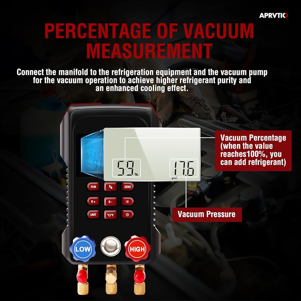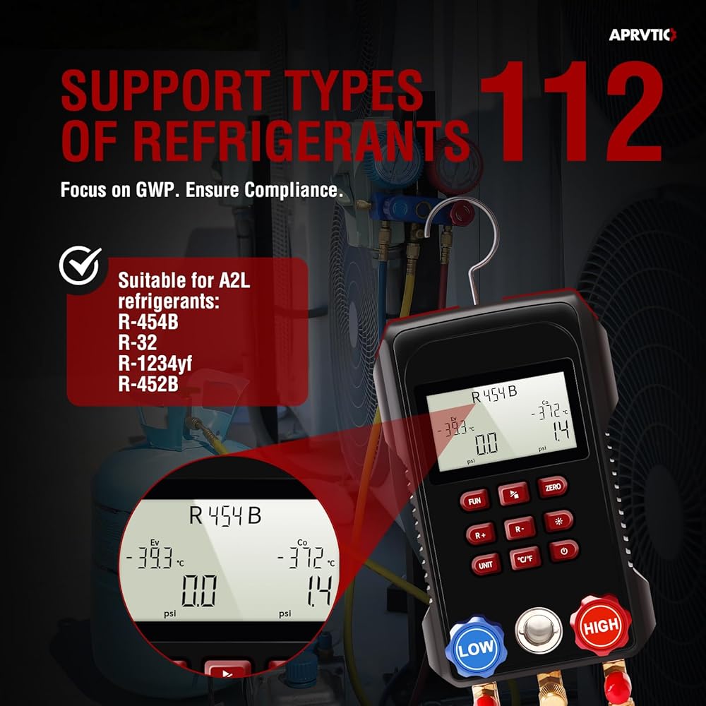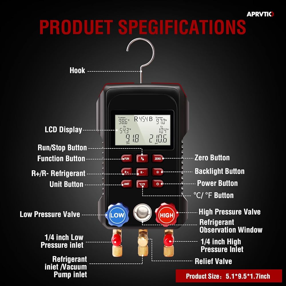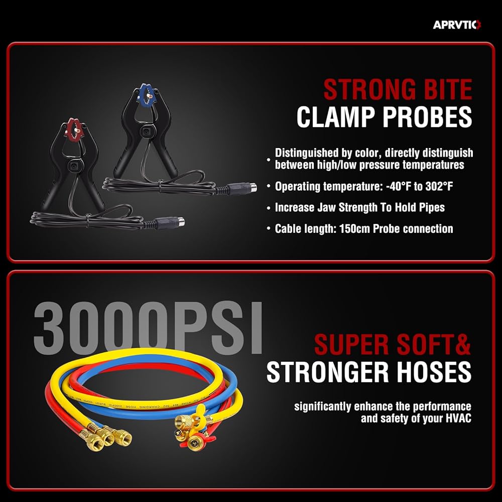مقياس رقمي متعدد، مجموعة قياس التيار المتردد الرقمي مجموعة قياس نظام تبريد السيارات والتكييف من Aprvtio لمجموعة أدوات نظام التدفئة والتهوية وتكييف الهواء للسيارات R134a R22 R12 R454B