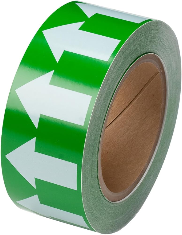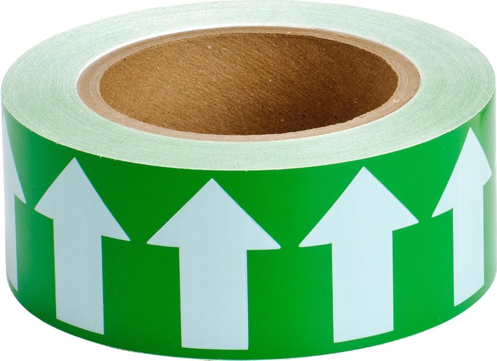 Brady 91421 2" العرض،90' الطول،B-946 فينيل عالي الأداء، أبيض على شريط سهم أخضر اللون