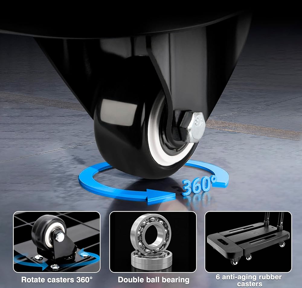 【شاحنة يدوية شديدة التحمل】هذه الشاحنة اليدوية القابلة للطي مع 6 عجلات مطاطية، يمكنها الدوران 360 درجة. تستطيع الشاحنة اليدوية استيعاب سعة تصل إلى 226.7 كجم. إنها تجعل عربة الأمتعة تتحرك بثبات وسلاسة في أنواع مختلفة من الطرق. 【مادة متينة】عربة مساعدة مصنوعة من هيكل صلب، لوحة قاعدة بلاستيكية مخصصة، مقبض من الفولاذ المقاوم للصدأ السميك.