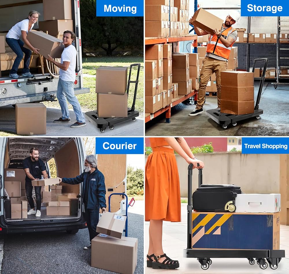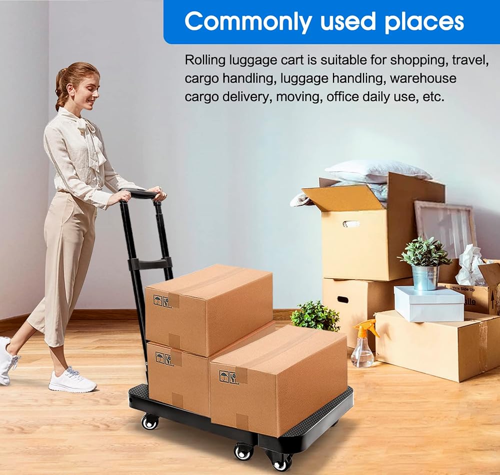 【استخدام على نطاق واسع】عربة الأمتعة المتدحرجة مناسبة للتسوق، والسفر التجاري، وتعامل البضائع، ونقل الأمتعة، والحمل في الهواء الطلق، وتسليم الشحنات في المستودعات، والمنزل المتحرك، والاستخدام اليومي في المكتب وما إلى ذلك.