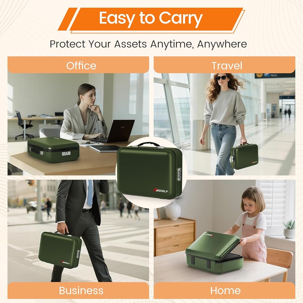 【خيارات متعددة الألوان وهدية مثالية】: يأتي صندوق المستندات المقاوم للحريق من GOELF بخمسة ألوان أنيقة لتناسب الجماليات والسيناريوهات المتنوعة. يعمل التصميم ثنائي الغرض لمنظم الملفات كخزنة منزلية مقاومة للحريق وهدية أنيقة للمحترفين أو عملاء الشركات الذين يبحثون عن حلول فعالة. سواء كان ذلك للاحتفال بالدفء المنزلي أو أمنيات عيد الميلاد أو هدايا العمل، فإن منظم المستندات هذا يجمع بين السلامة الرسمية من الحرائق والراحة العملية - مما يحول رعايتك إلى حماية ملموسة.
