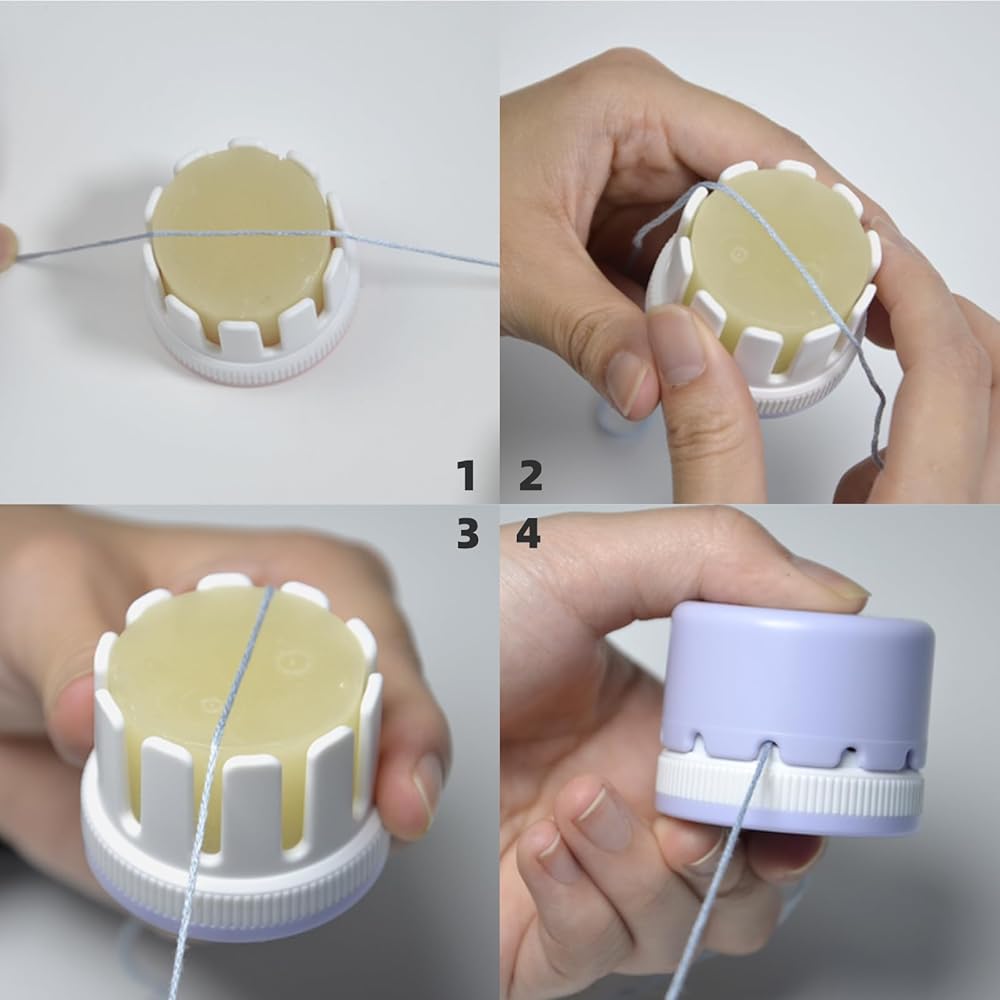 Features: 1, The large capacity of wax block is newly upgraded, which can be used for a longer time. 2, The material is abs+beeswax. 3, The rotating line wax is designed with top and bottom caps, and the knob design at the bottom allows the wax block to be used evenly at every angle. You can rotate the wax block with grooves after use to adjust the direction and choose a new position to cross the line. 4, The top cover is equipped with a thread outlet hole, which can pull the wool better. 5, White plastic parts can be rotated, by rotating the form, so that the wax block can be maximally used. Multiple teeth are designed for better thread pulling. Direct pulling: place the thread on the thread wax, align the notches and pull, it can make the wax evenly coated on the thread. Pulling with the cover on: Place the thread on the thread wax and align the notches on both sides, put the knob cover on, adjust the position of the notches and pull the thread towards your side to finish. Pulling on the tines: You can enter the thread from the side and wrap the thread around the tines to pull it.